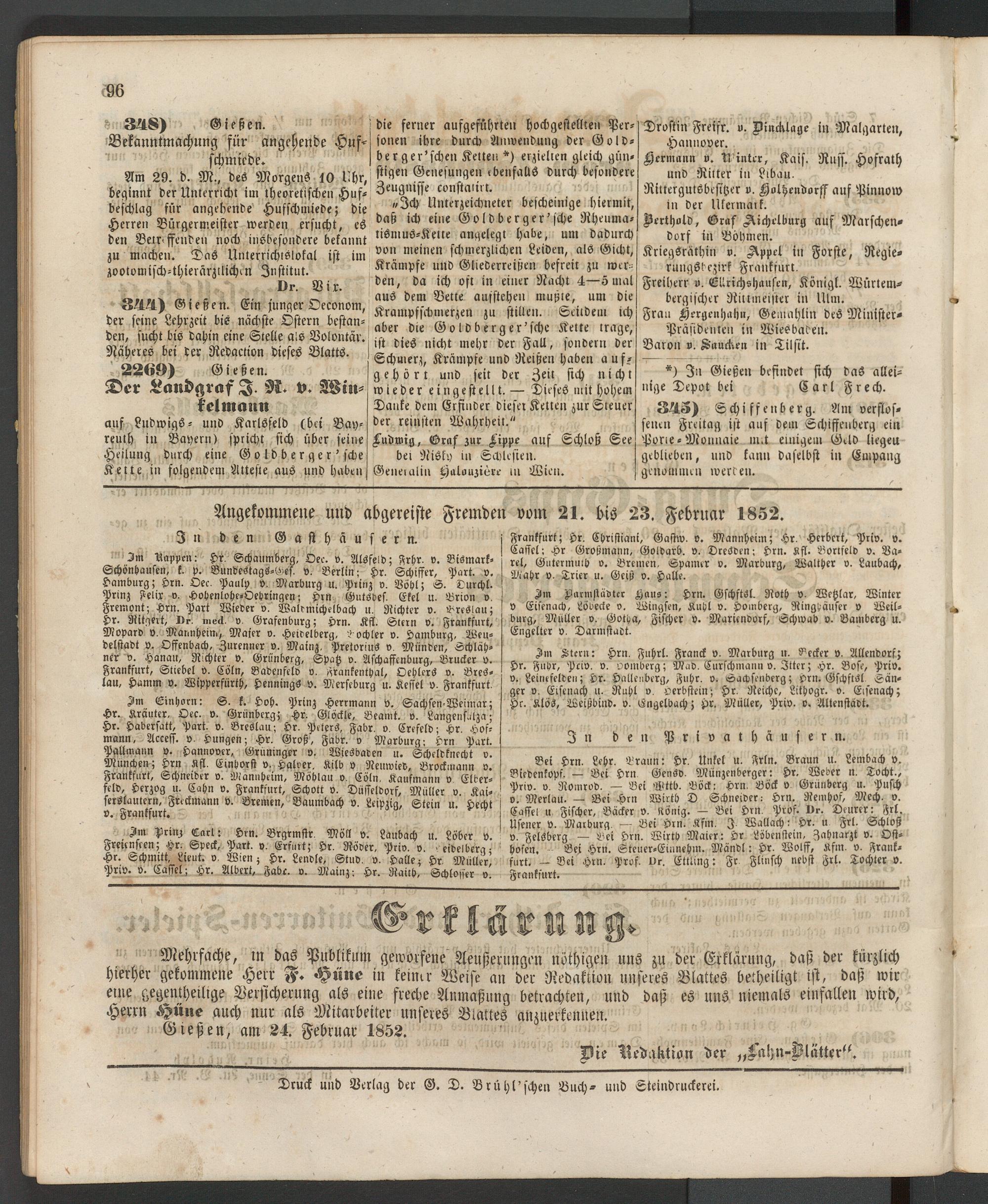 Anzeigeblatt für die Provinzialhauptstadt Gießen. 1840-1867