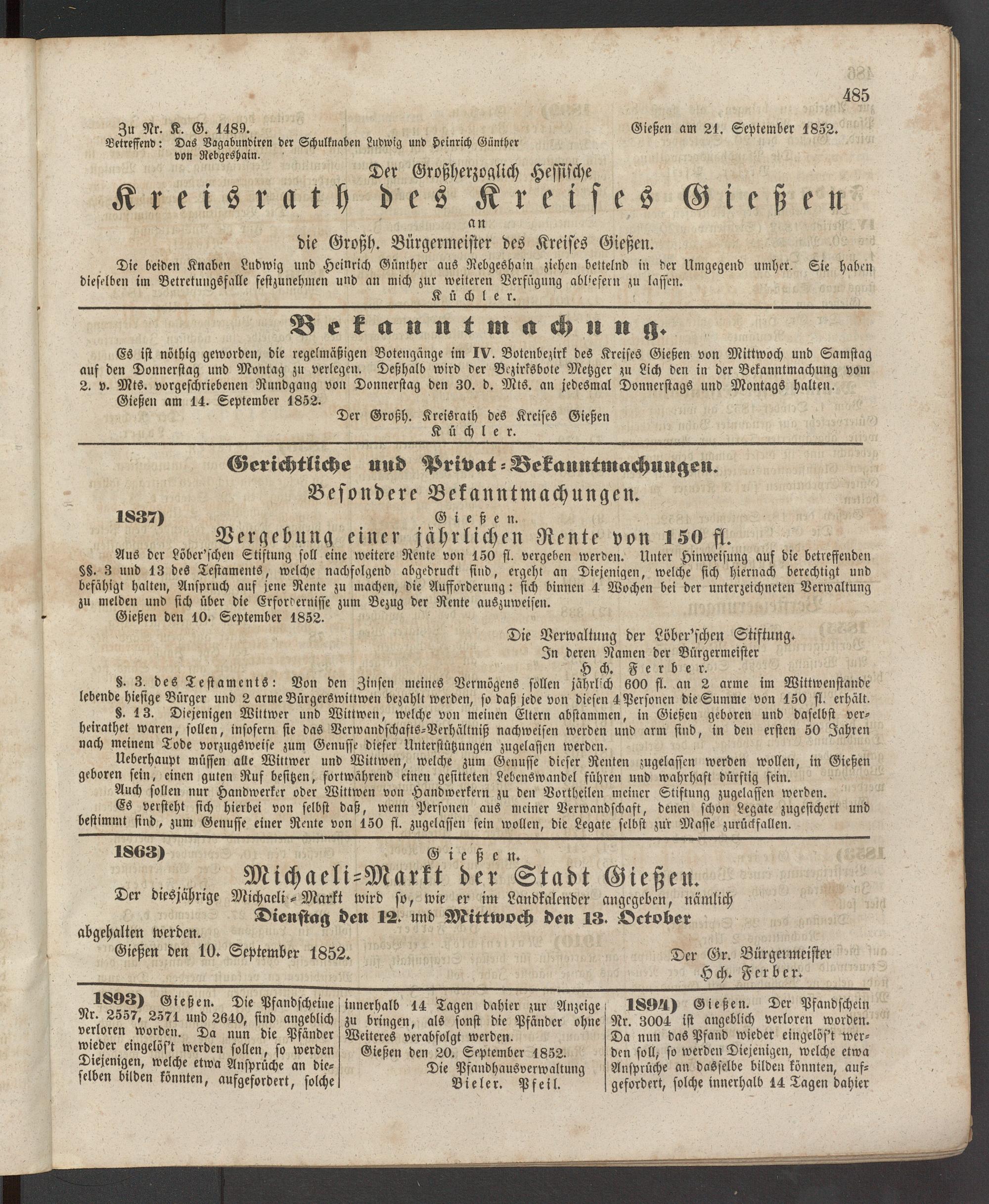 Anzeigeblatt für die Provinzialhauptstadt Gießen. 1840-1867