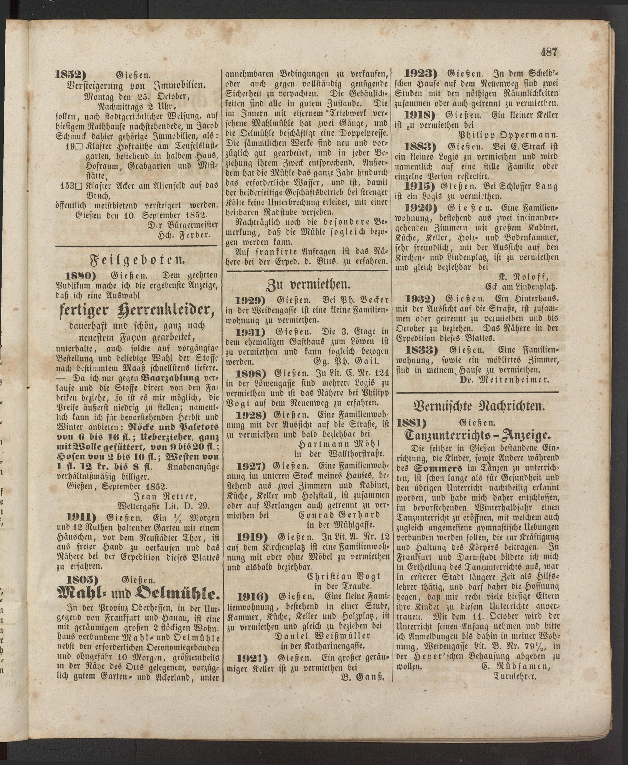Anzeigeblatt für die Provinzialhauptstadt Gießen. 1840-1867