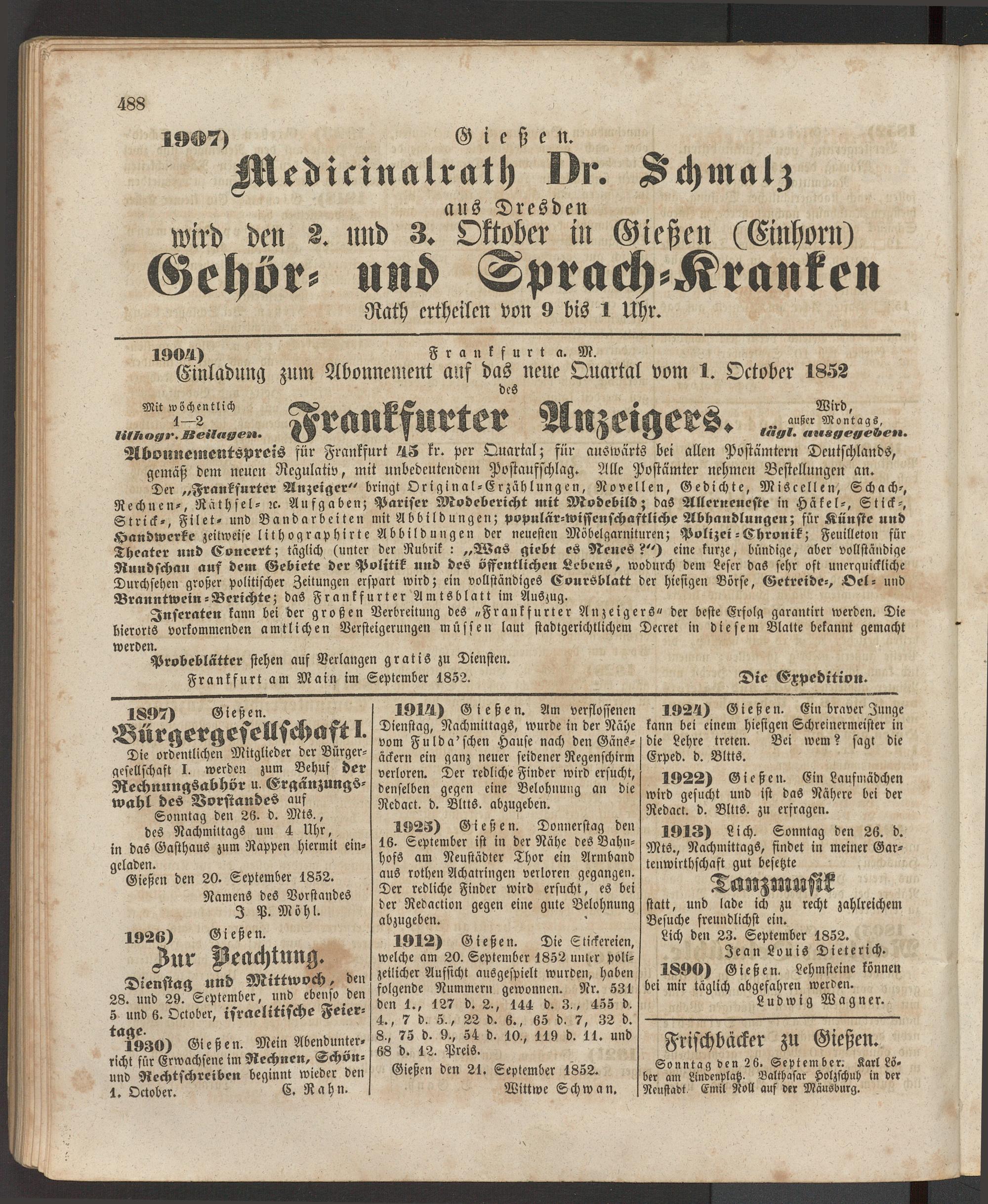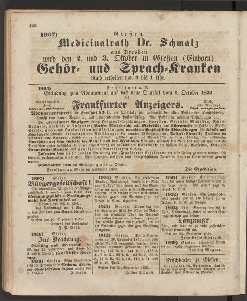 Anzeigeblatt für die Provinzialhauptstadt Gießen. 1840-1867