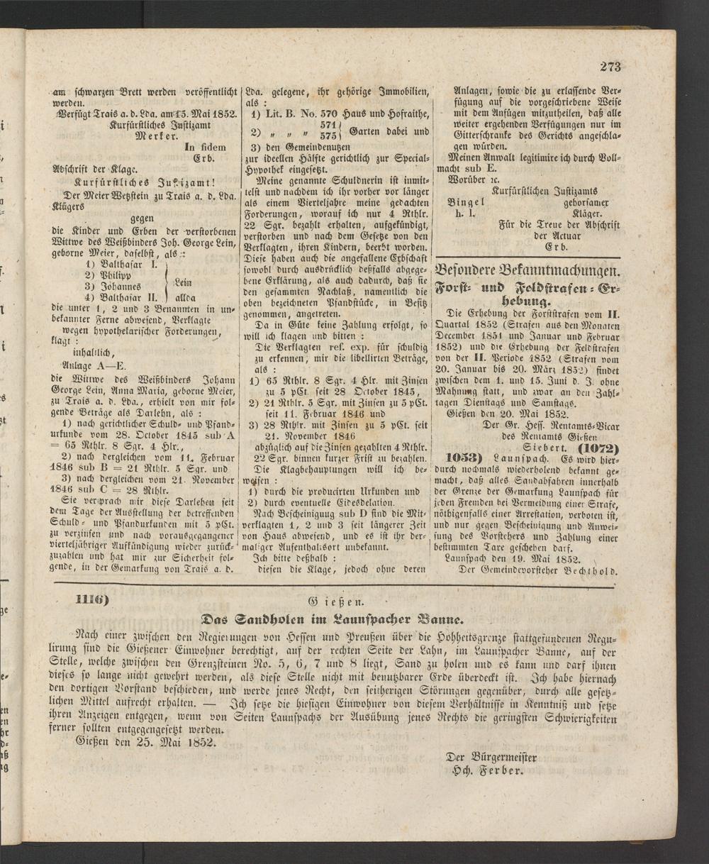Anzeigeblatt für die Provinzialhauptstadt Gießen. 1840-1867