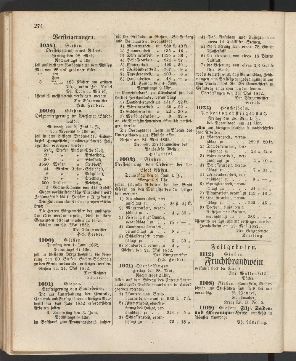 Anzeigeblatt für die Provinzialhauptstadt Gießen. 1840-1867