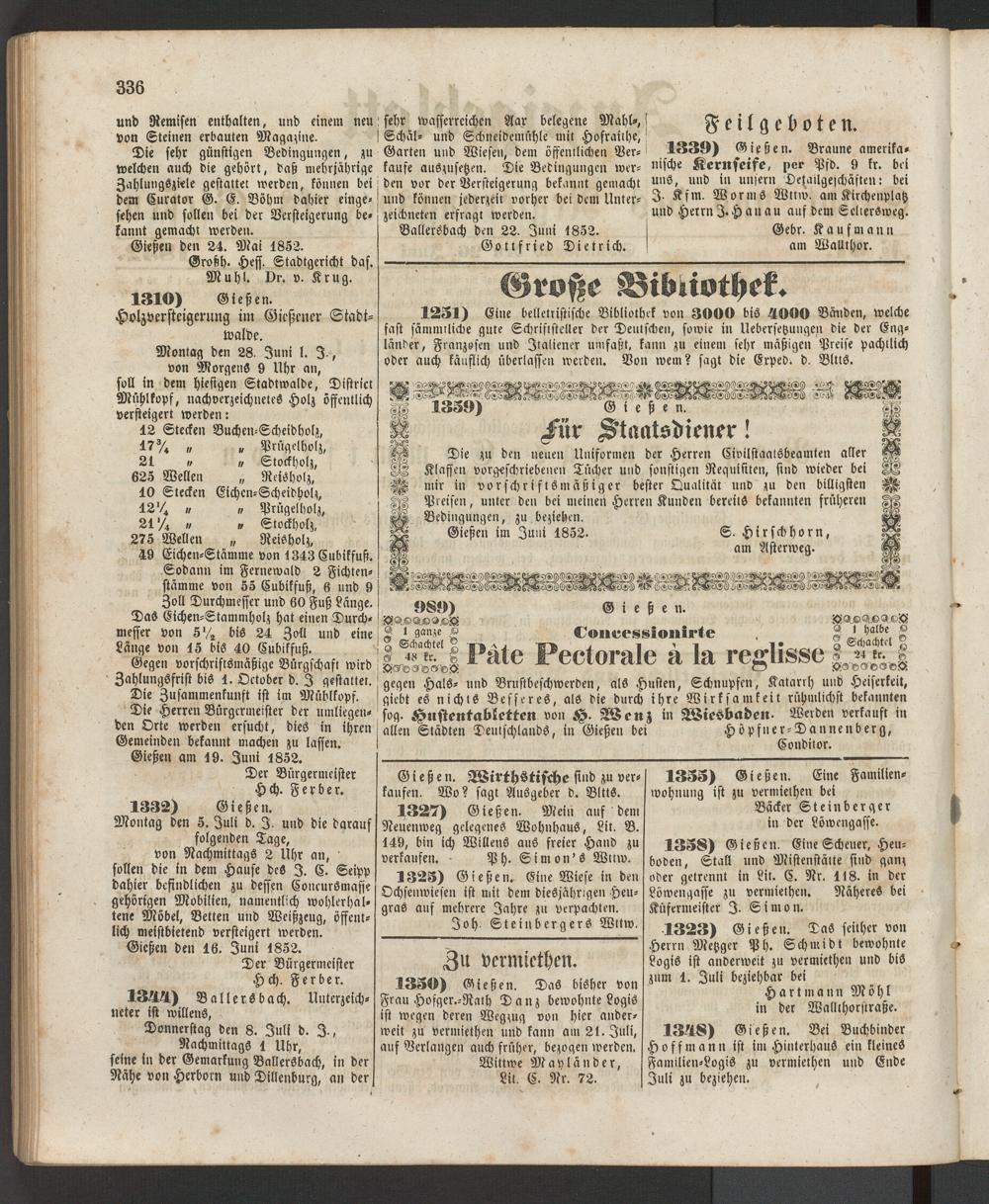 Anzeigeblatt für die Provinzialhauptstadt Gießen. 1840-1867