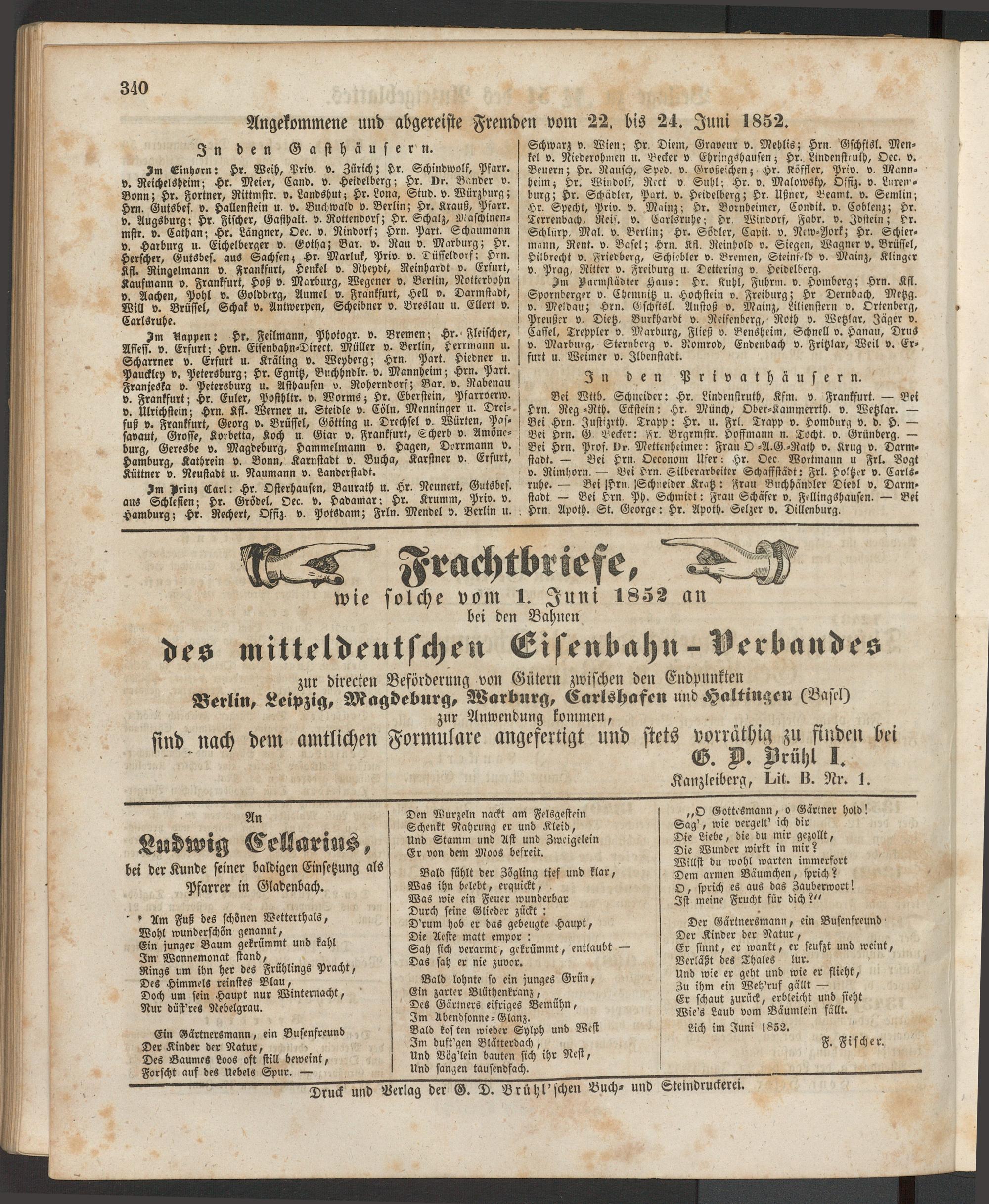 Anzeigeblatt für die Provinzialhauptstadt Gießen. 1840-1867