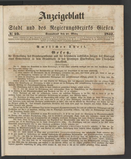 Anzeigeblatt für die Provinzialhauptstadt Gießen. 1840-1867