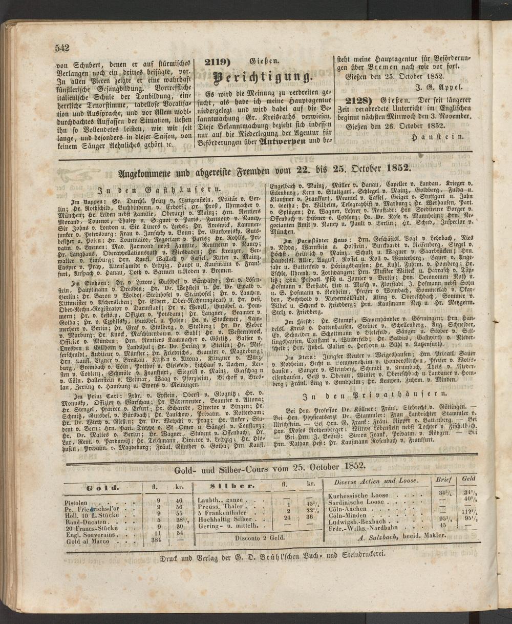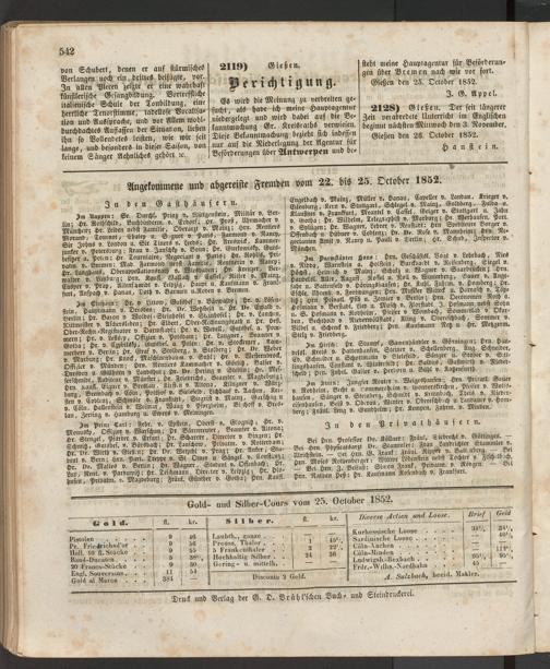 Anzeigeblatt für die Provinzialhauptstadt Gießen. 1840-1867