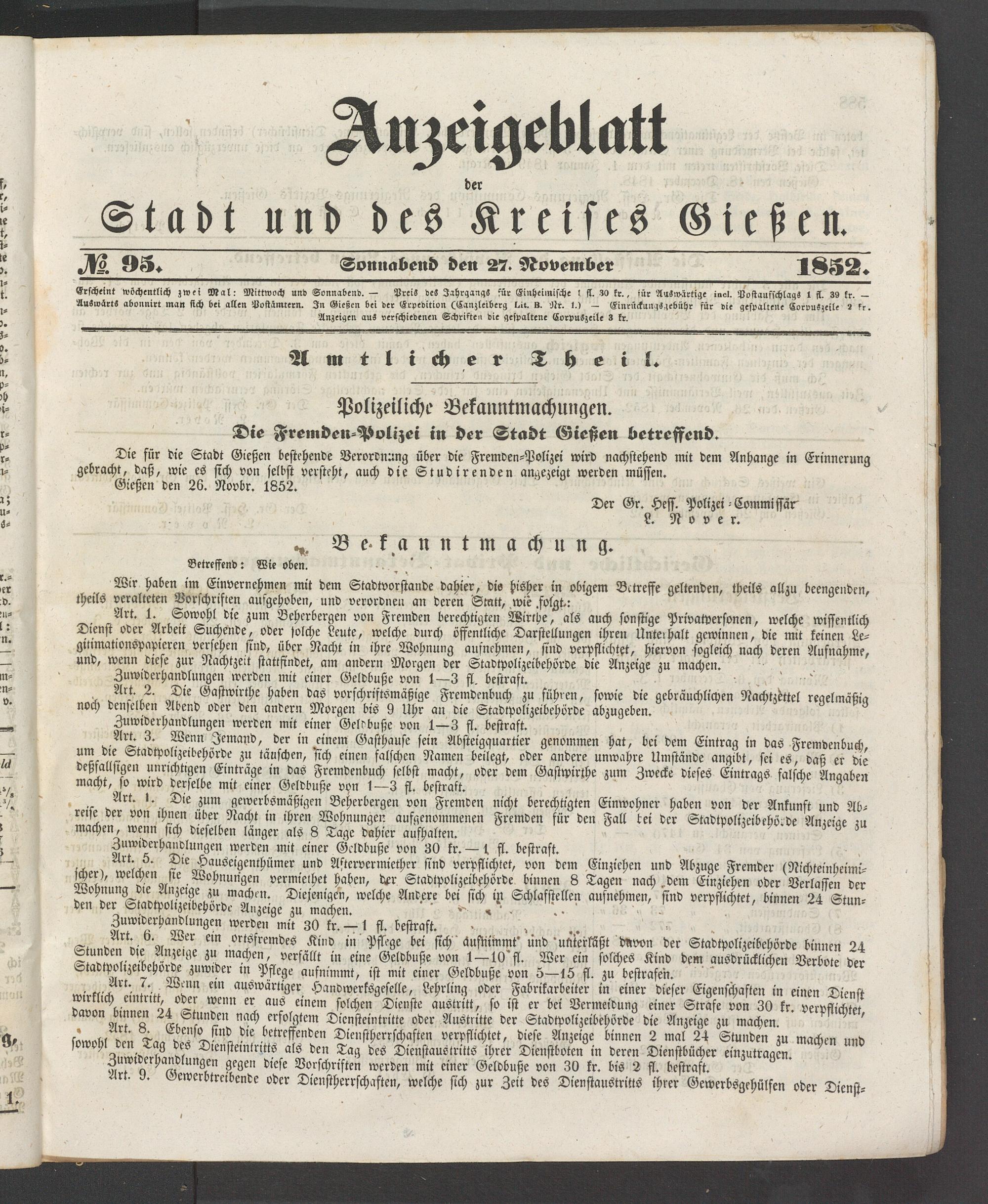 Anzeigeblatt für die Provinzialhauptstadt Gießen. 1840-1867