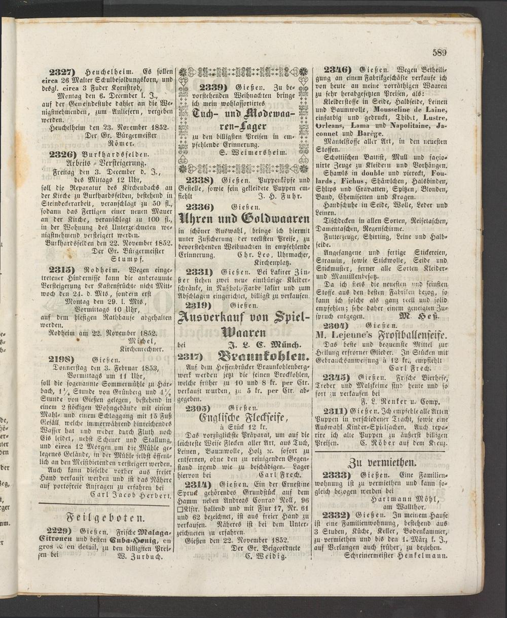 Anzeigeblatt für die Provinzialhauptstadt Gießen. 1840-1867