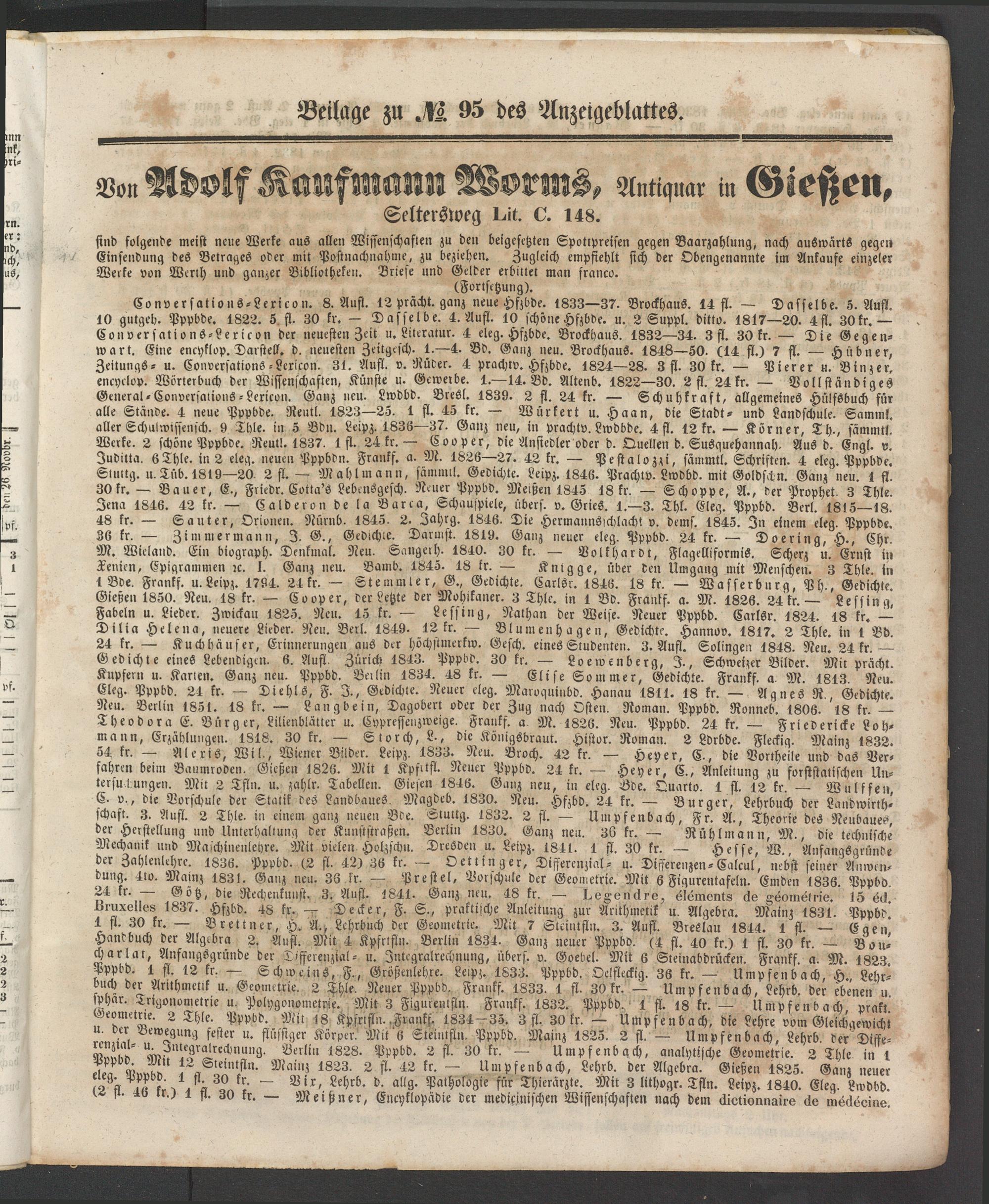 Anzeigeblatt für die Provinzialhauptstadt Gießen. 1840-1867