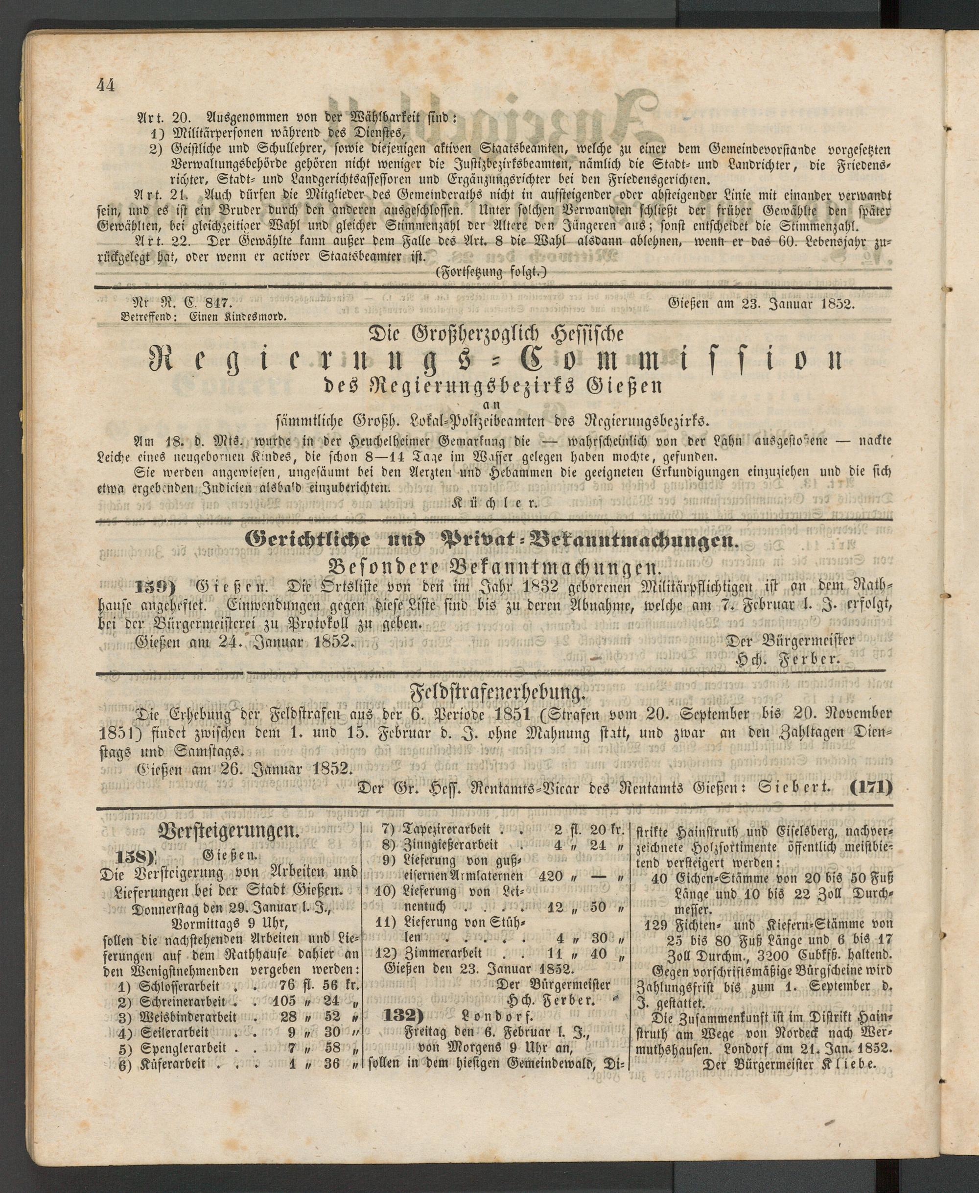 Anzeigeblatt für die Provinzialhauptstadt Gießen. 1840-1867