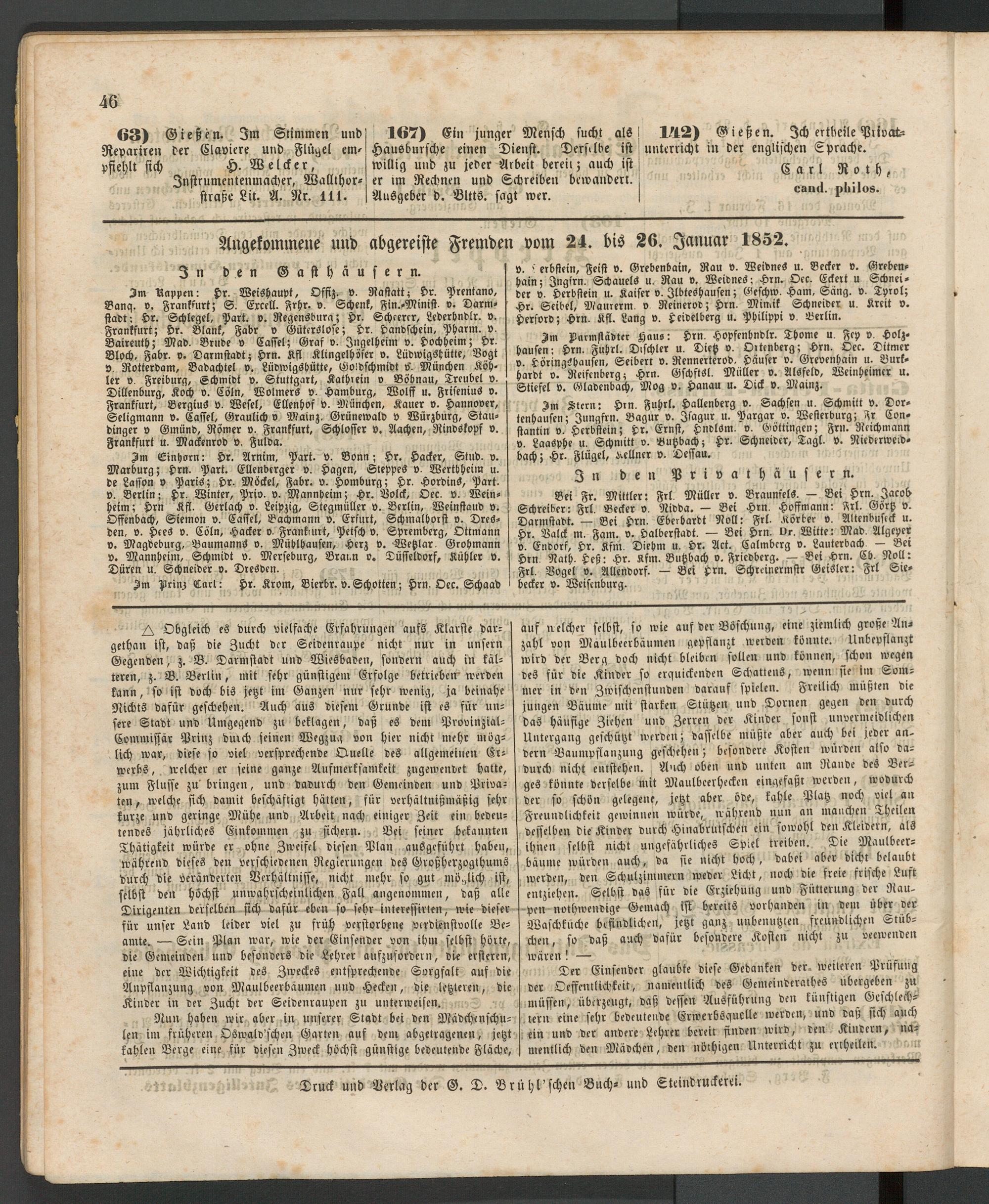 Anzeigeblatt für die Provinzialhauptstadt Gießen. 1840-1867
