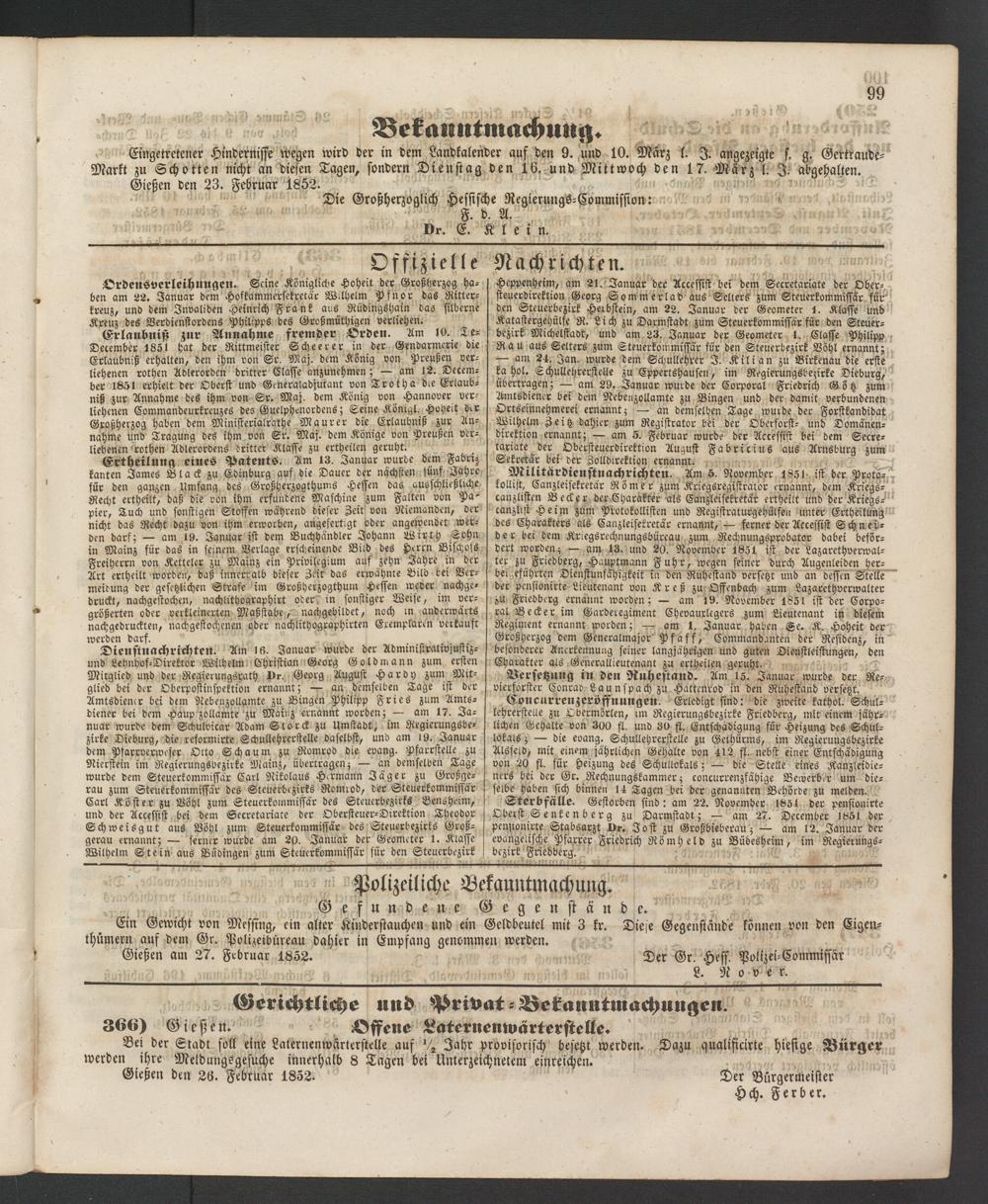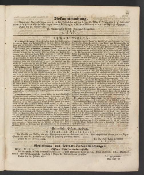Anzeigeblatt für die Provinzialhauptstadt Gießen. 1840-1867