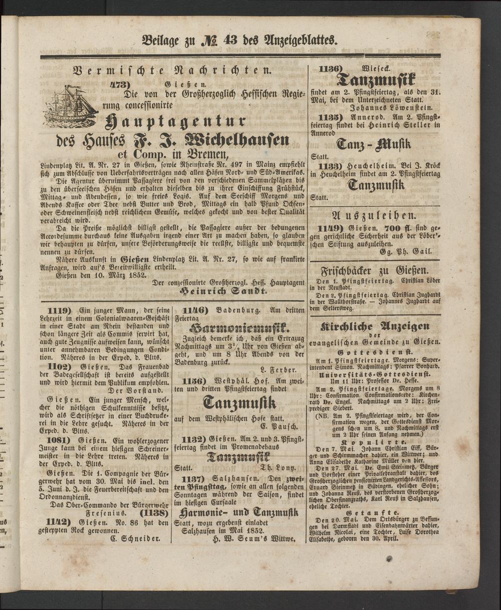 Anzeigeblatt für die Provinzialhauptstadt Gießen. 1840-1867