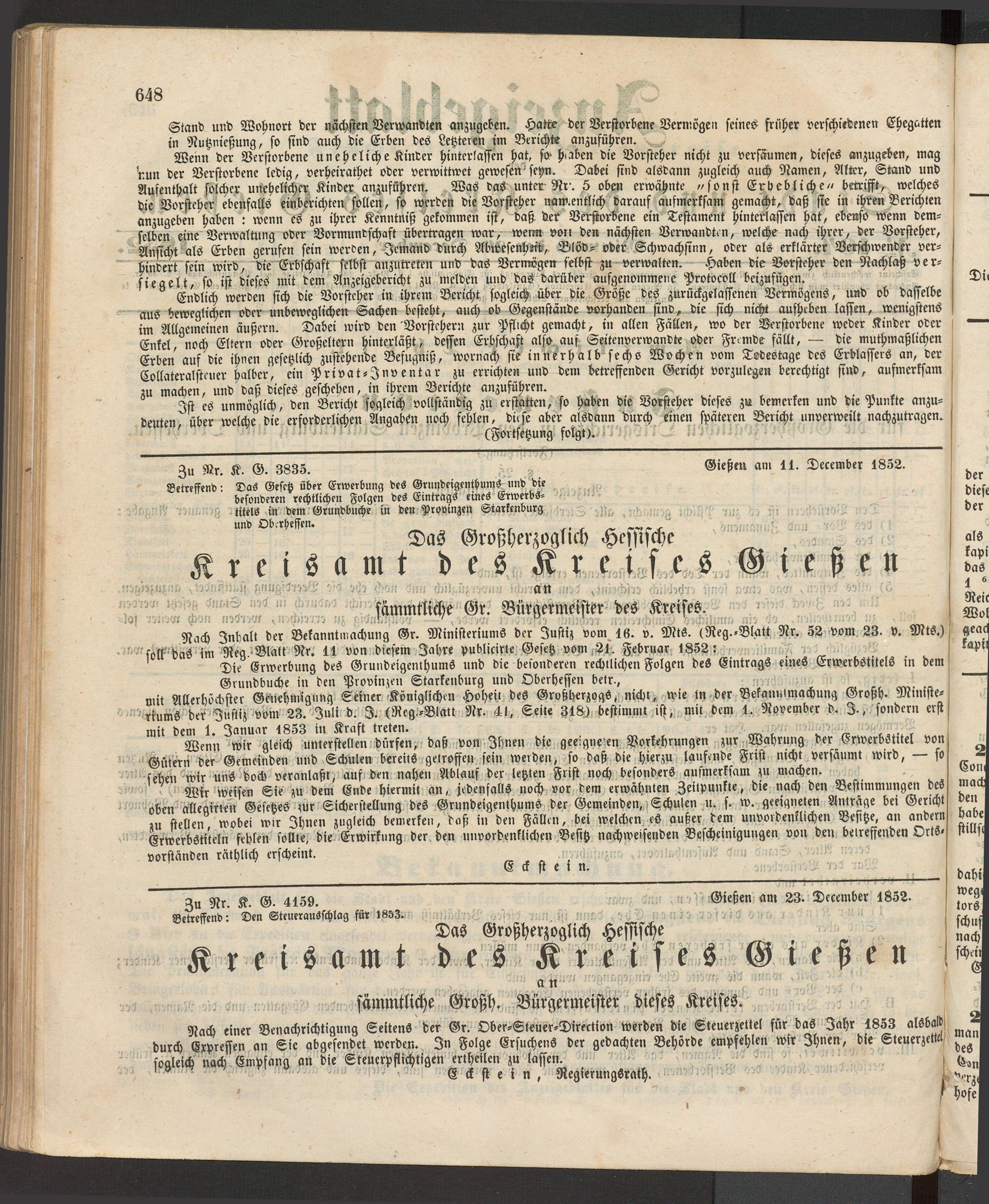 Anzeigeblatt für die Provinzialhauptstadt Gießen. 1840-1867