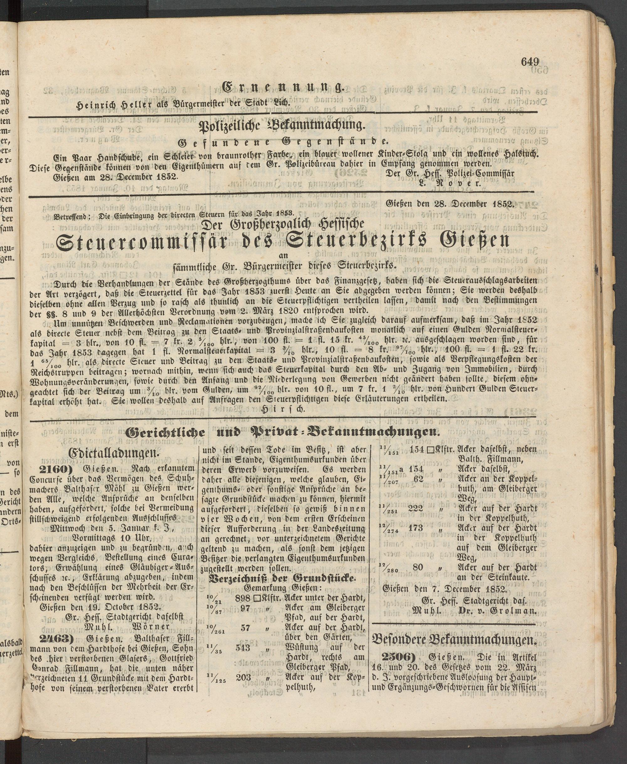 Anzeigeblatt für die Provinzialhauptstadt Gießen. 1840-1867