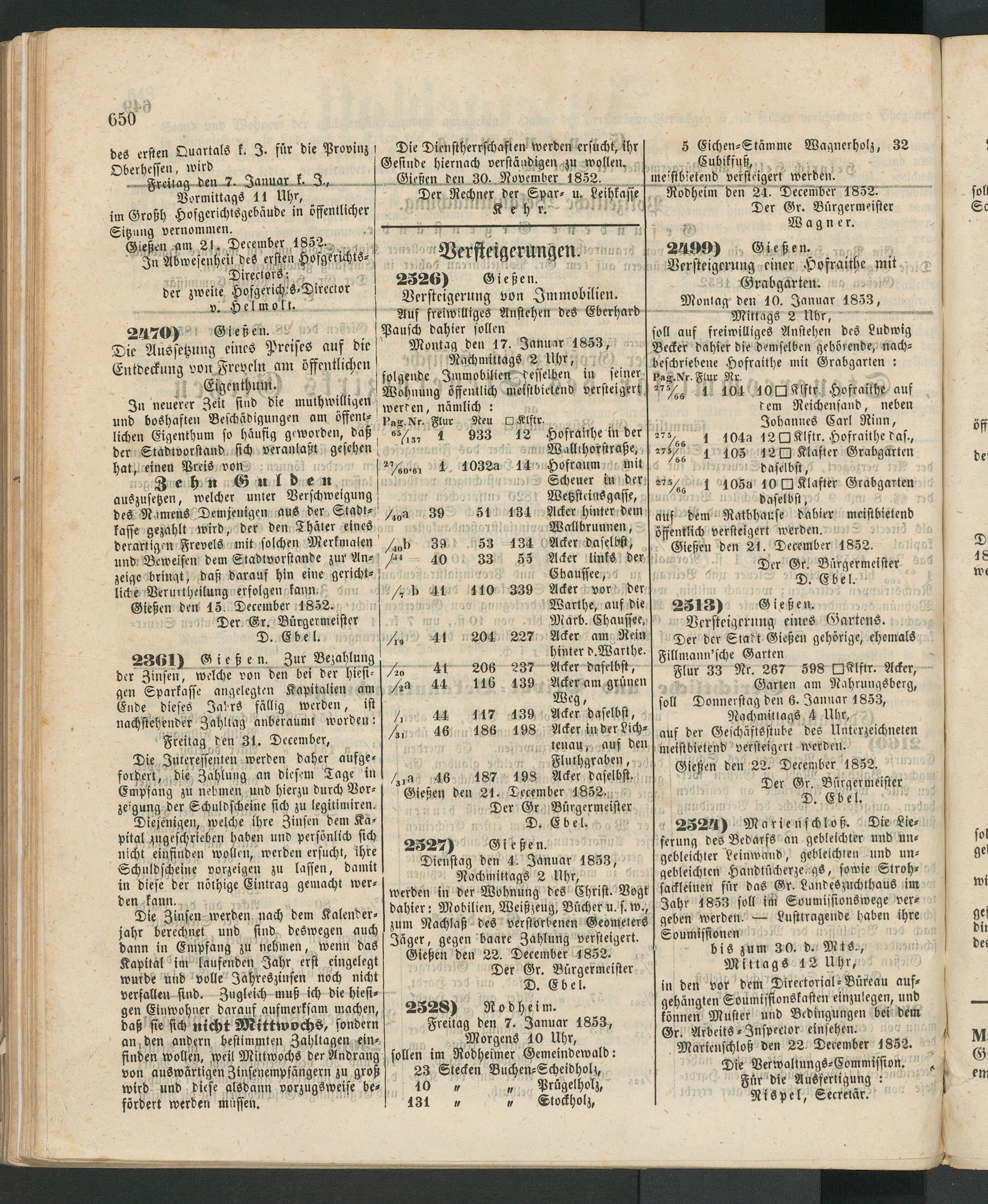 Anzeigeblatt für die Provinzialhauptstadt Gießen. 1840-1867