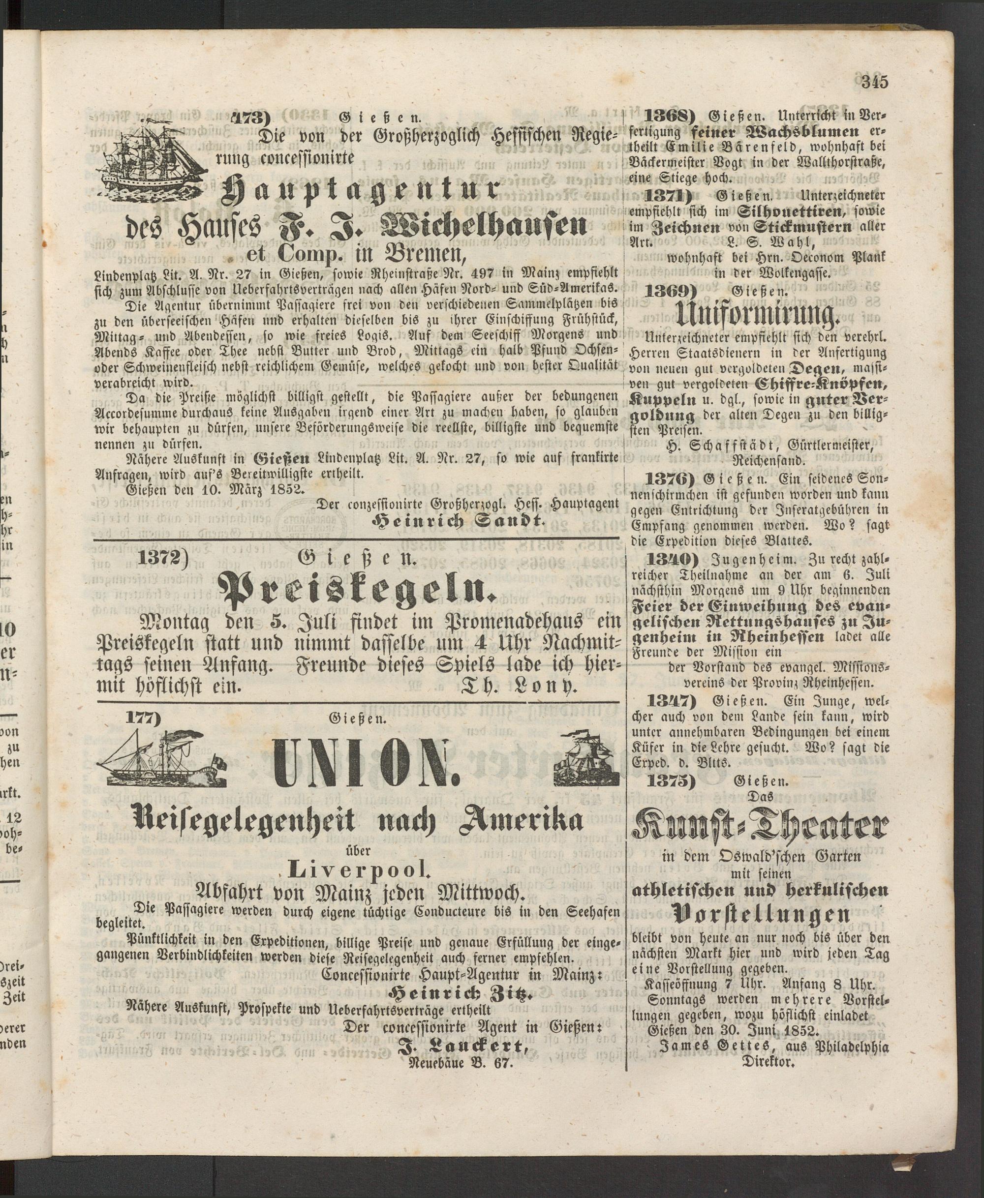 Anzeigeblatt für die Provinzialhauptstadt Gießen. 1840-1867