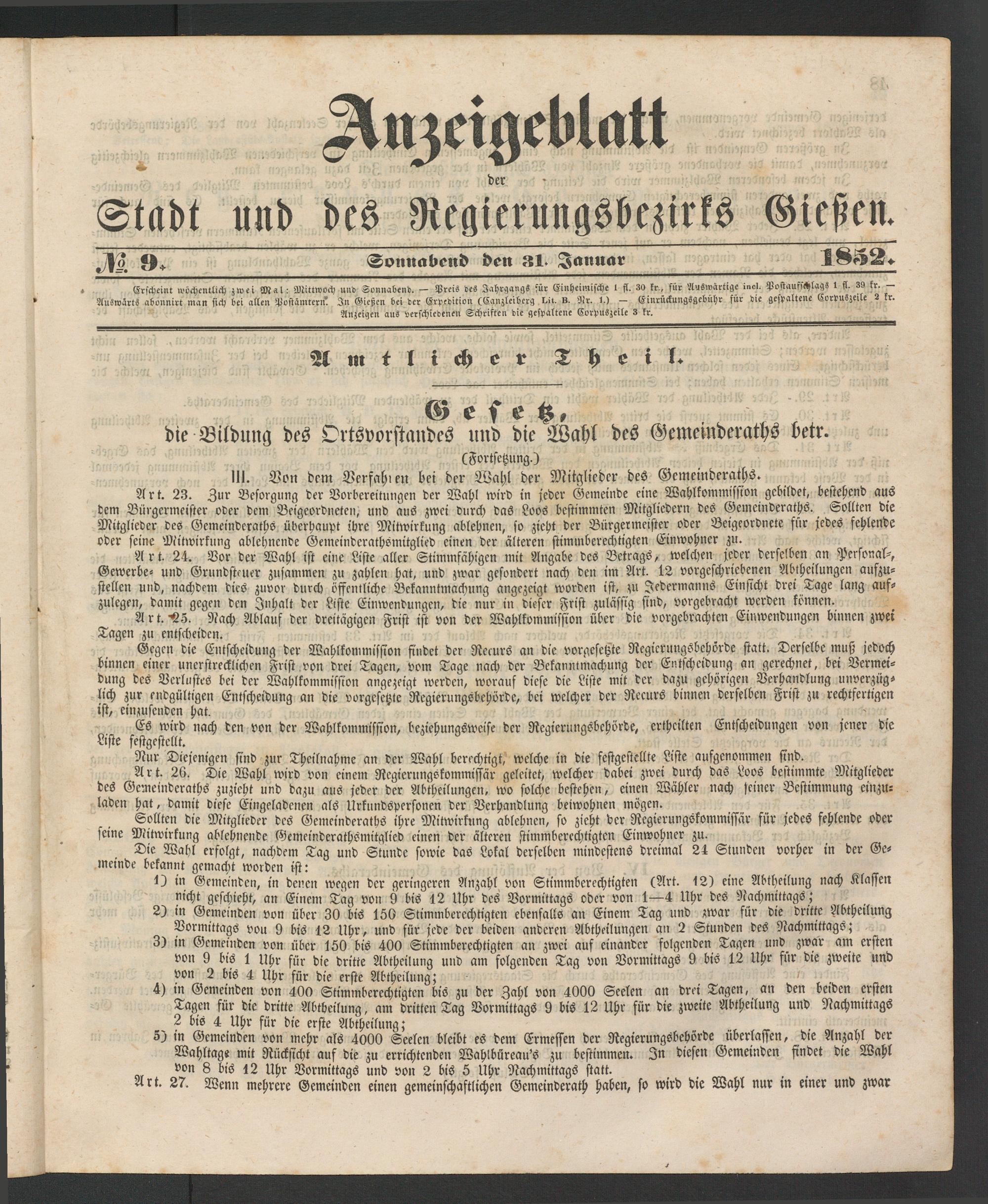 Anzeigeblatt für die Provinzialhauptstadt Gießen. 1840-1867