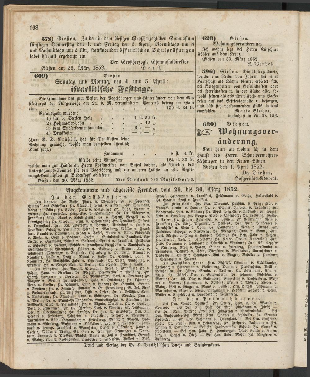 Anzeigeblatt für die Provinzialhauptstadt Gießen. 1840-1867