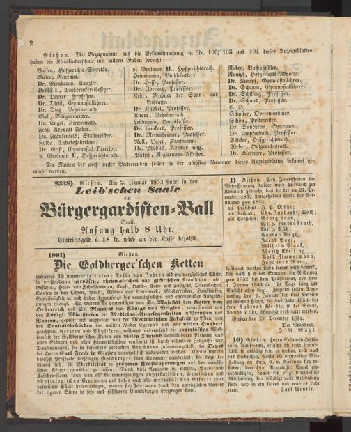 Anzeigeblatt für die Provinzialhauptstadt Gießen. 1840-1867