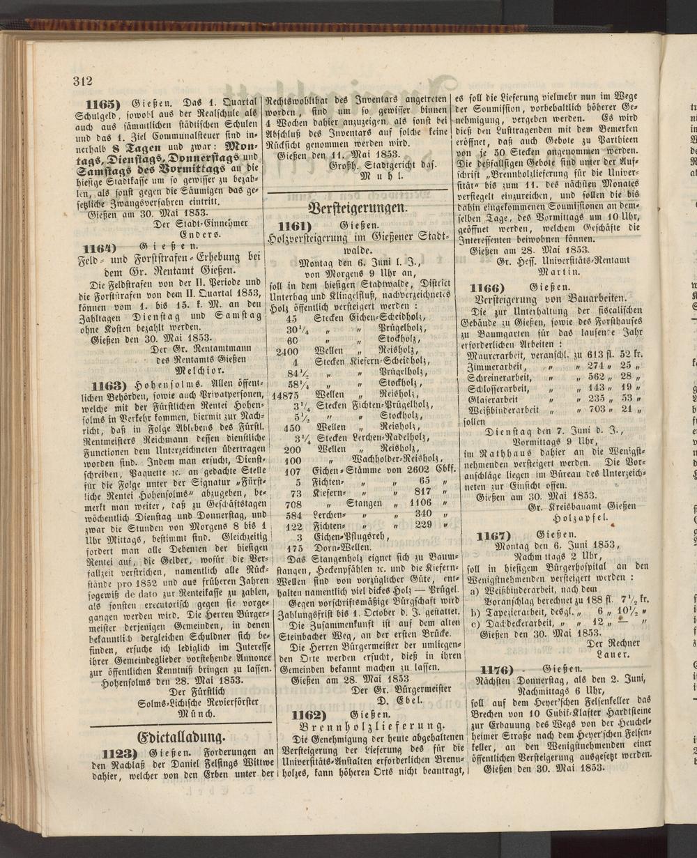 Anzeigeblatt für die Provinzialhauptstadt Gießen. 1840-1867