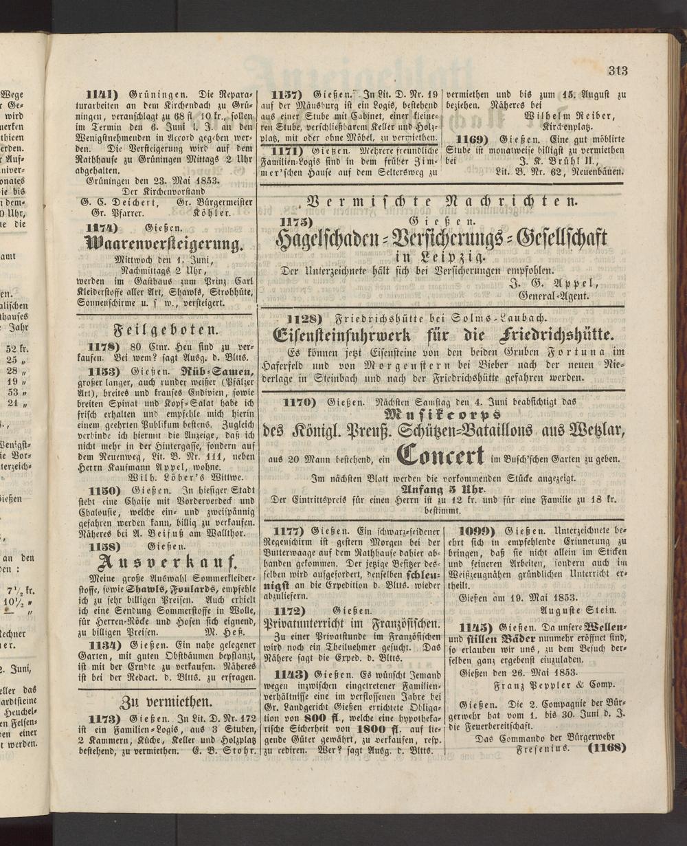 Anzeigeblatt für die Provinzialhauptstadt Gießen. 1840-1867