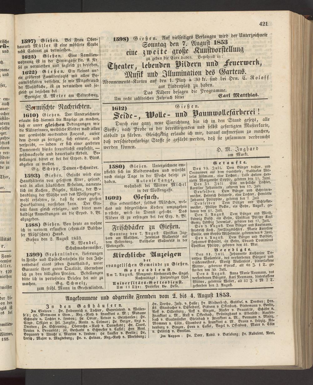 Anzeigeblatt für die Provinzialhauptstadt Gießen. 1840-1867