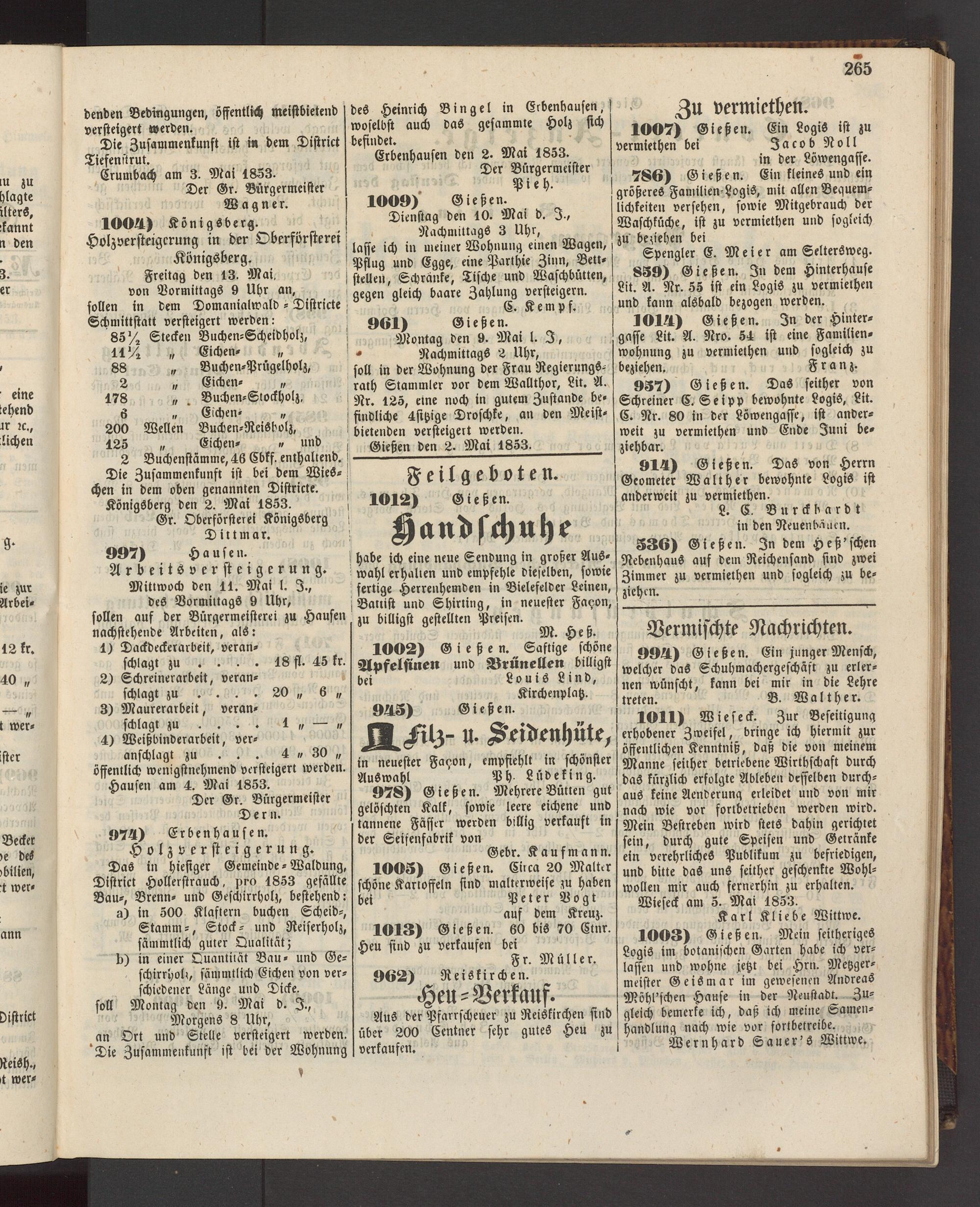 Anzeigeblatt für die Provinzialhauptstadt Gießen. 1840-1867