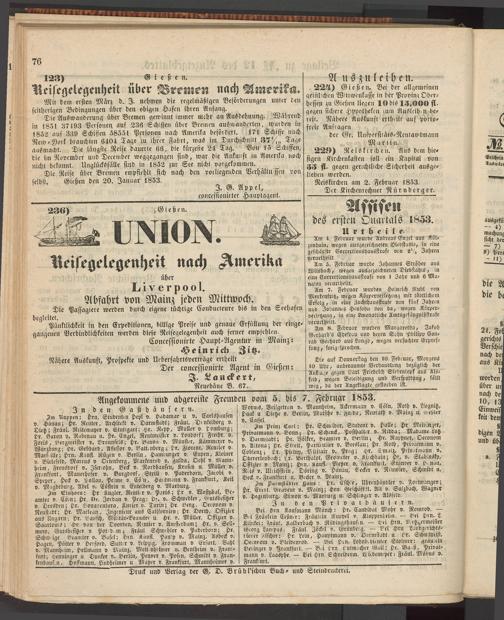 Anzeigeblatt für die Provinzialhauptstadt Gießen. 1840-1867