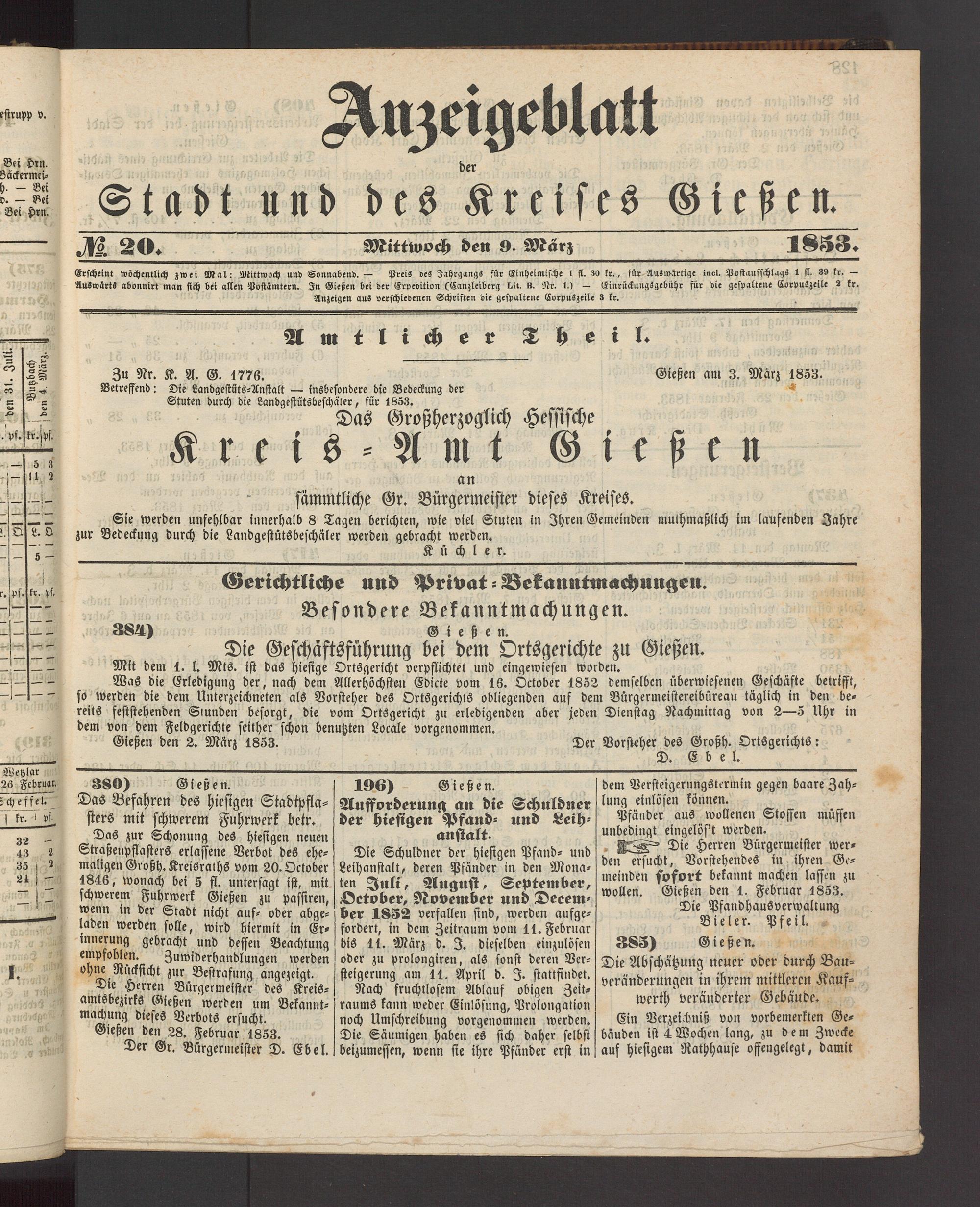 Anzeigeblatt für die Provinzialhauptstadt Gießen. 1840-1867