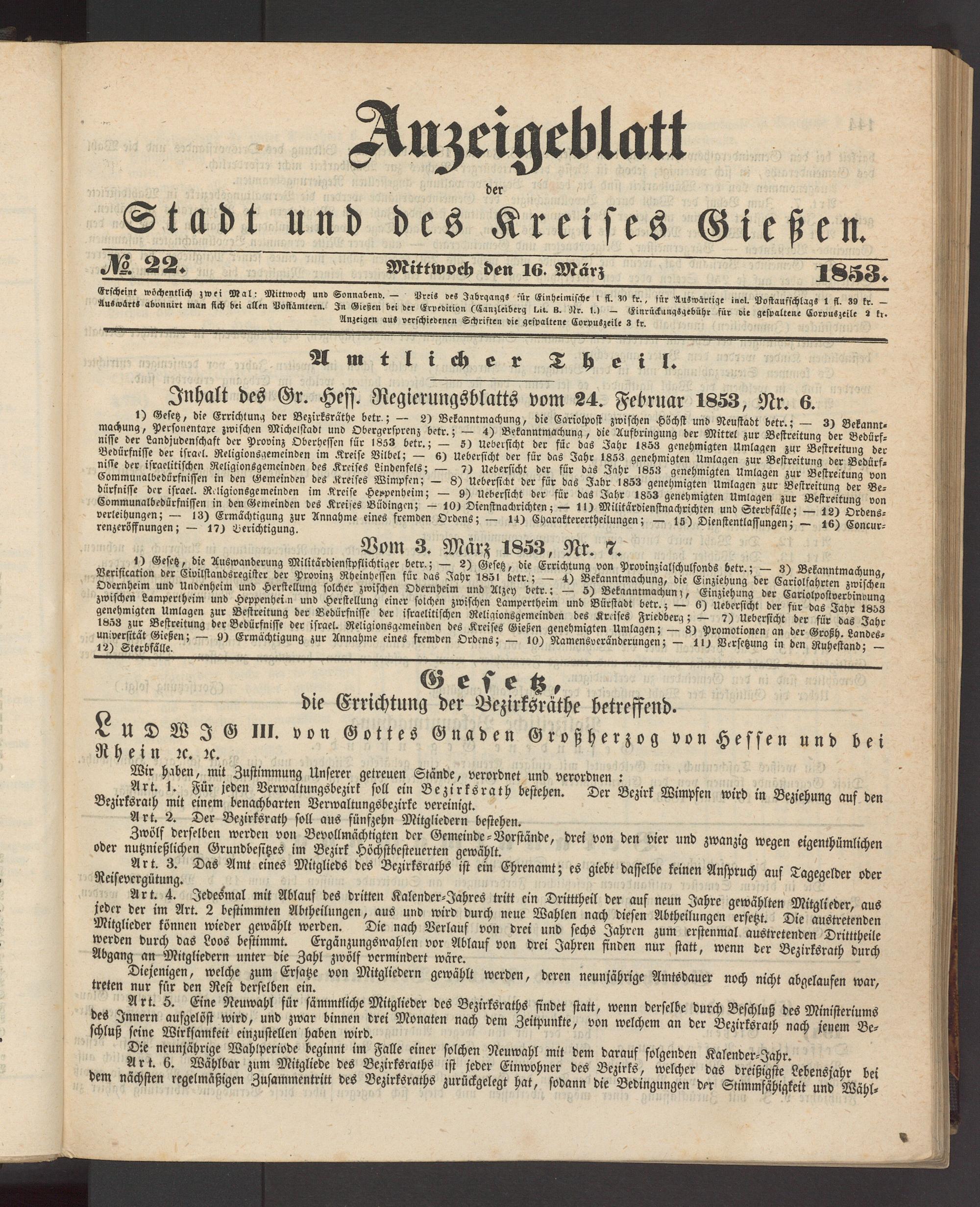 Anzeigeblatt für die Provinzialhauptstadt Gießen. 1840-1867