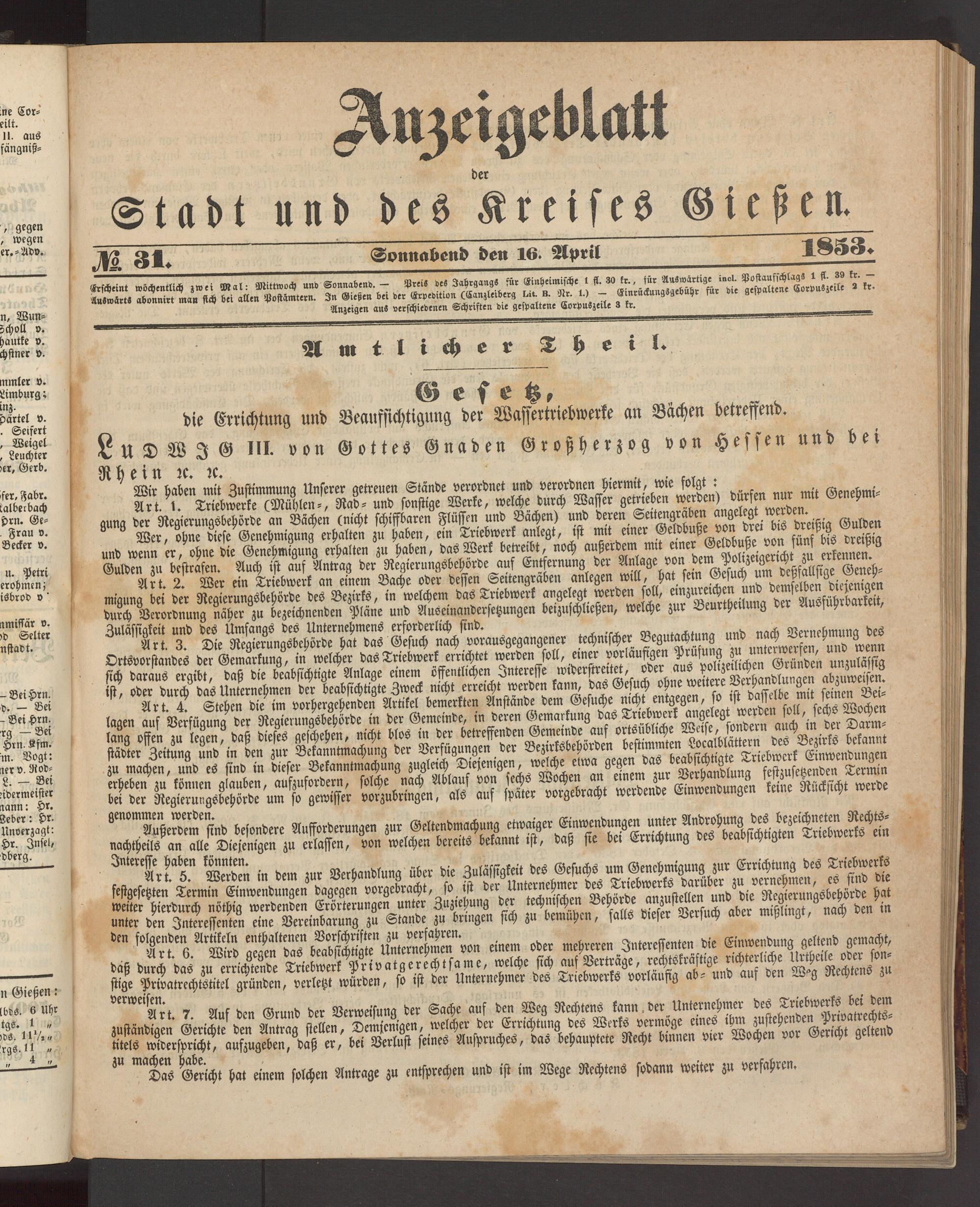 Anzeigeblatt für die Provinzialhauptstadt Gießen. 1840-1867