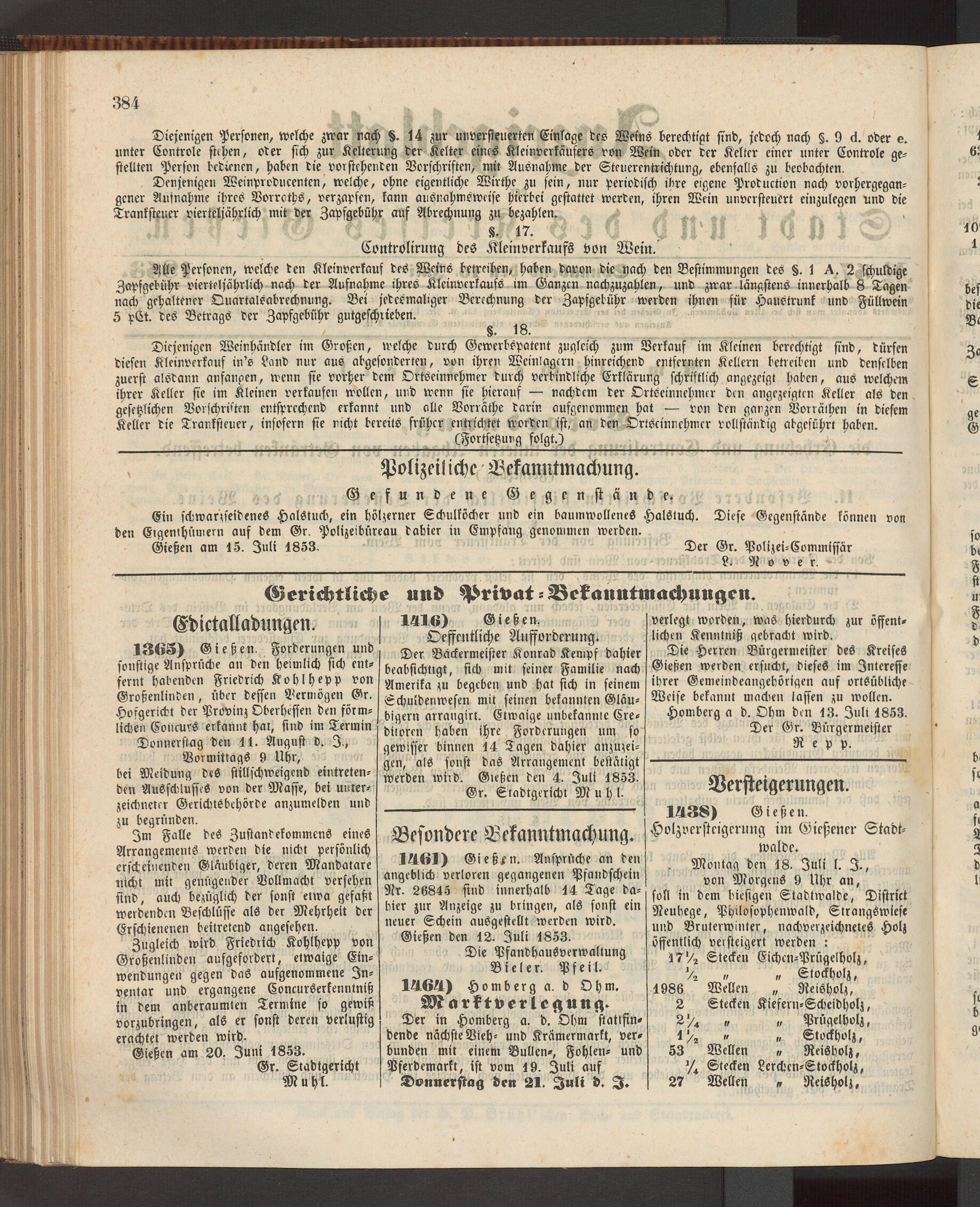 Anzeigeblatt für die Provinzialhauptstadt Gießen. 1840-1867