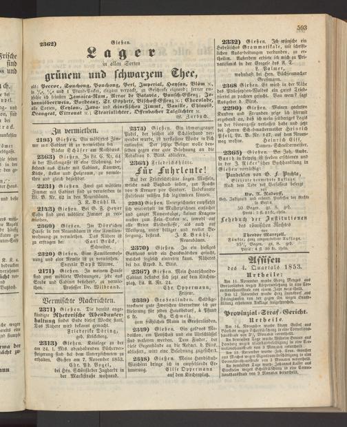 Anzeigeblatt für die Provinzialhauptstadt Gießen. 1840-1867