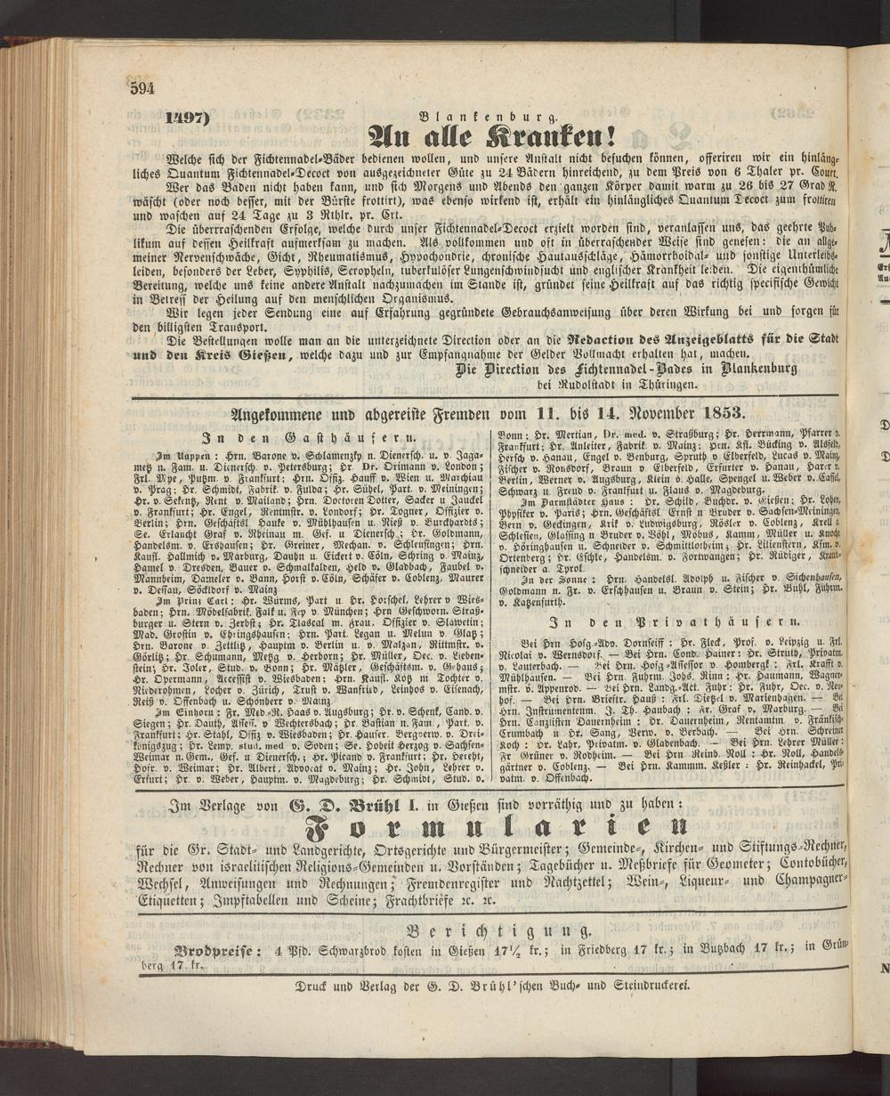 Anzeigeblatt für die Provinzialhauptstadt Gießen. 1840-1867