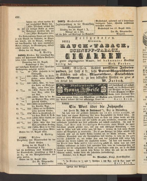 Anzeigeblatt für die Provinzialhauptstadt Gießen. 1840-1867