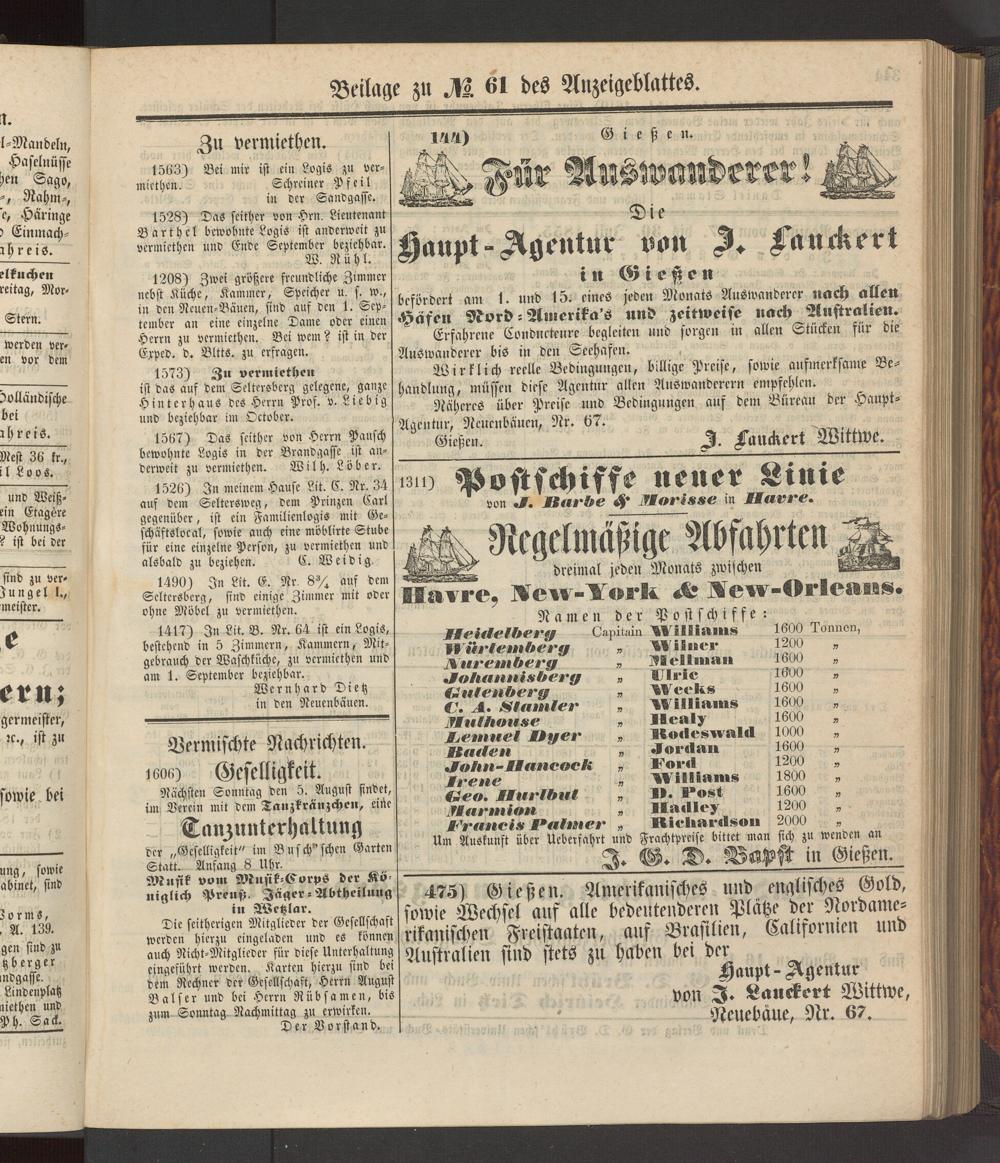 Anzeigeblatt für die Provinzialhauptstadt Gießen. 1840-1867