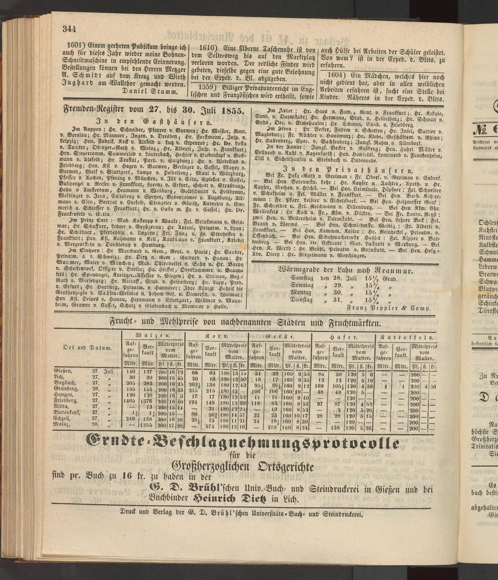 Anzeigeblatt für die Provinzialhauptstadt Gießen. 1840-1867