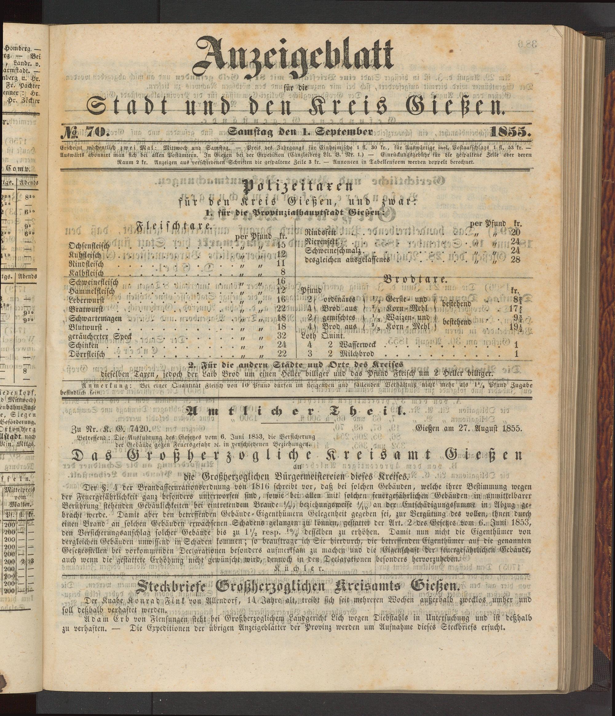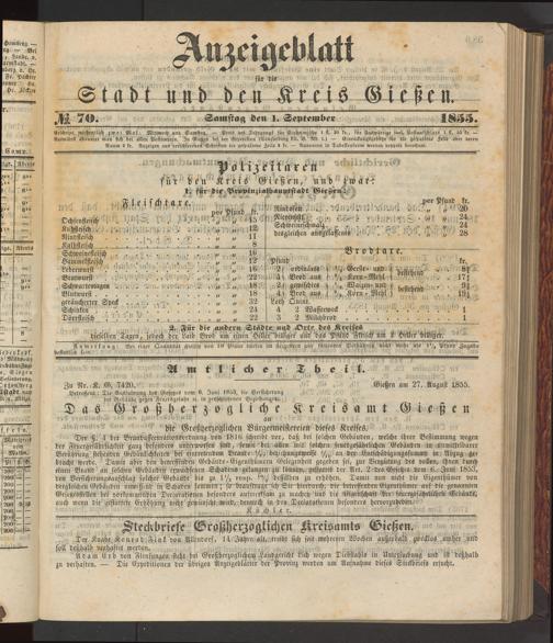 Anzeigeblatt für die Provinzialhauptstadt Gießen. 1840-1867