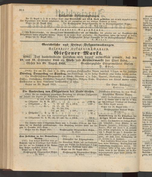 Anzeigeblatt für die Provinzialhauptstadt Gießen. 1840-1867
