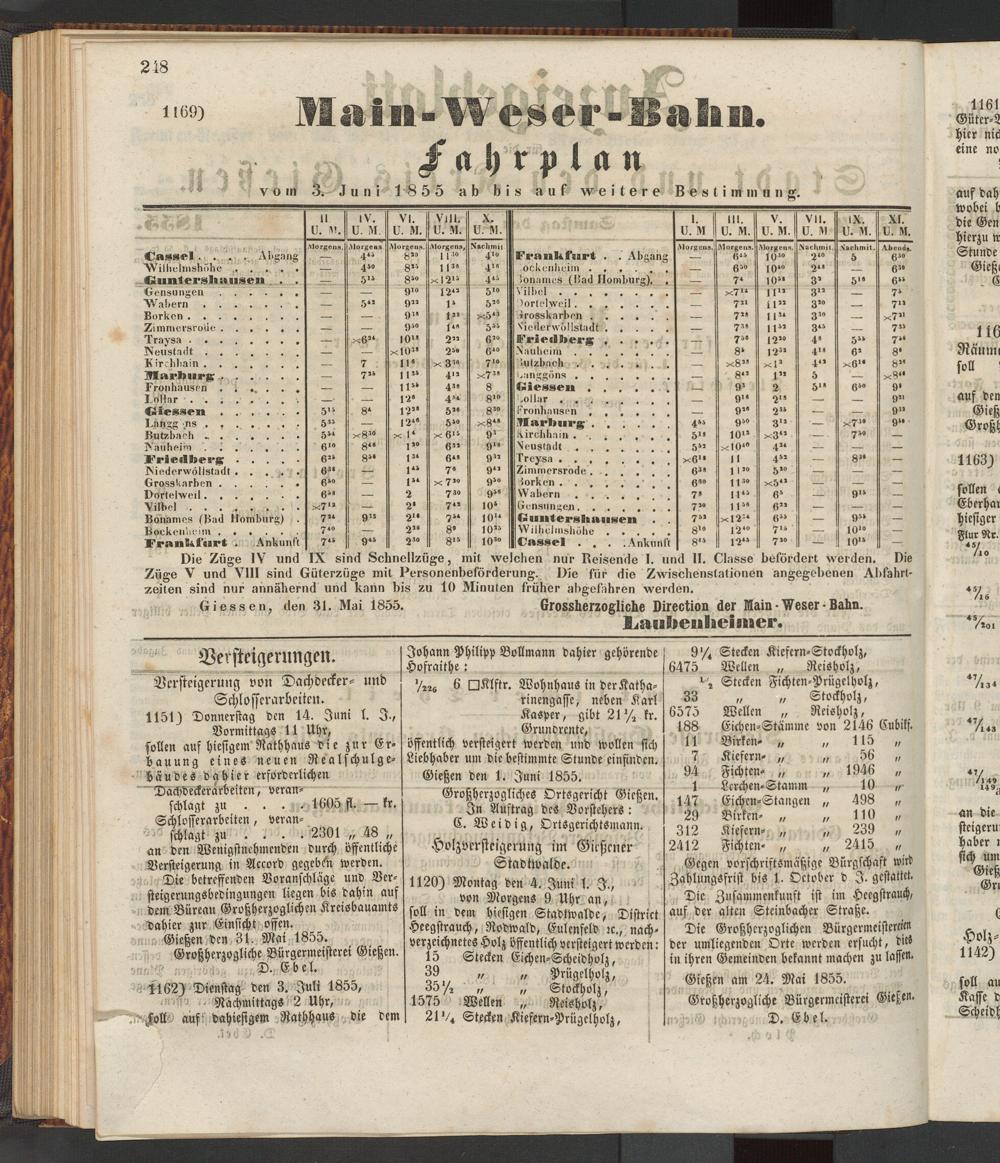 Anzeigeblatt für die Provinzialhauptstadt Gießen. 1840-1867