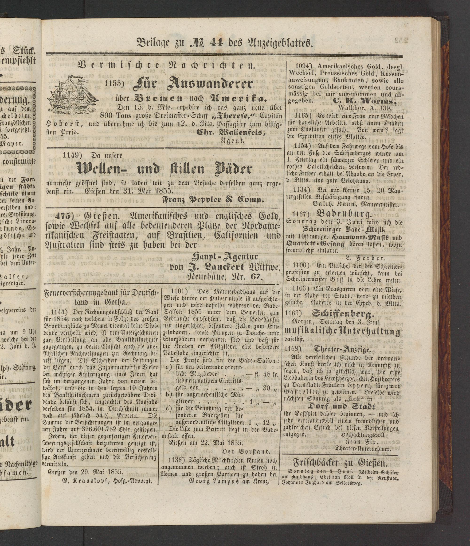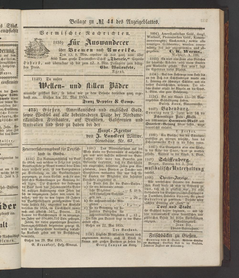 Anzeigeblatt für die Provinzialhauptstadt Gießen. 1840-1867