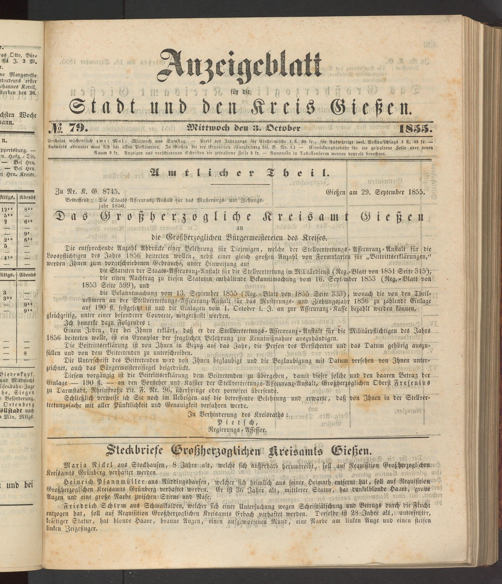 Anzeigeblatt für die Provinzialhauptstadt Gießen. 1840-1867