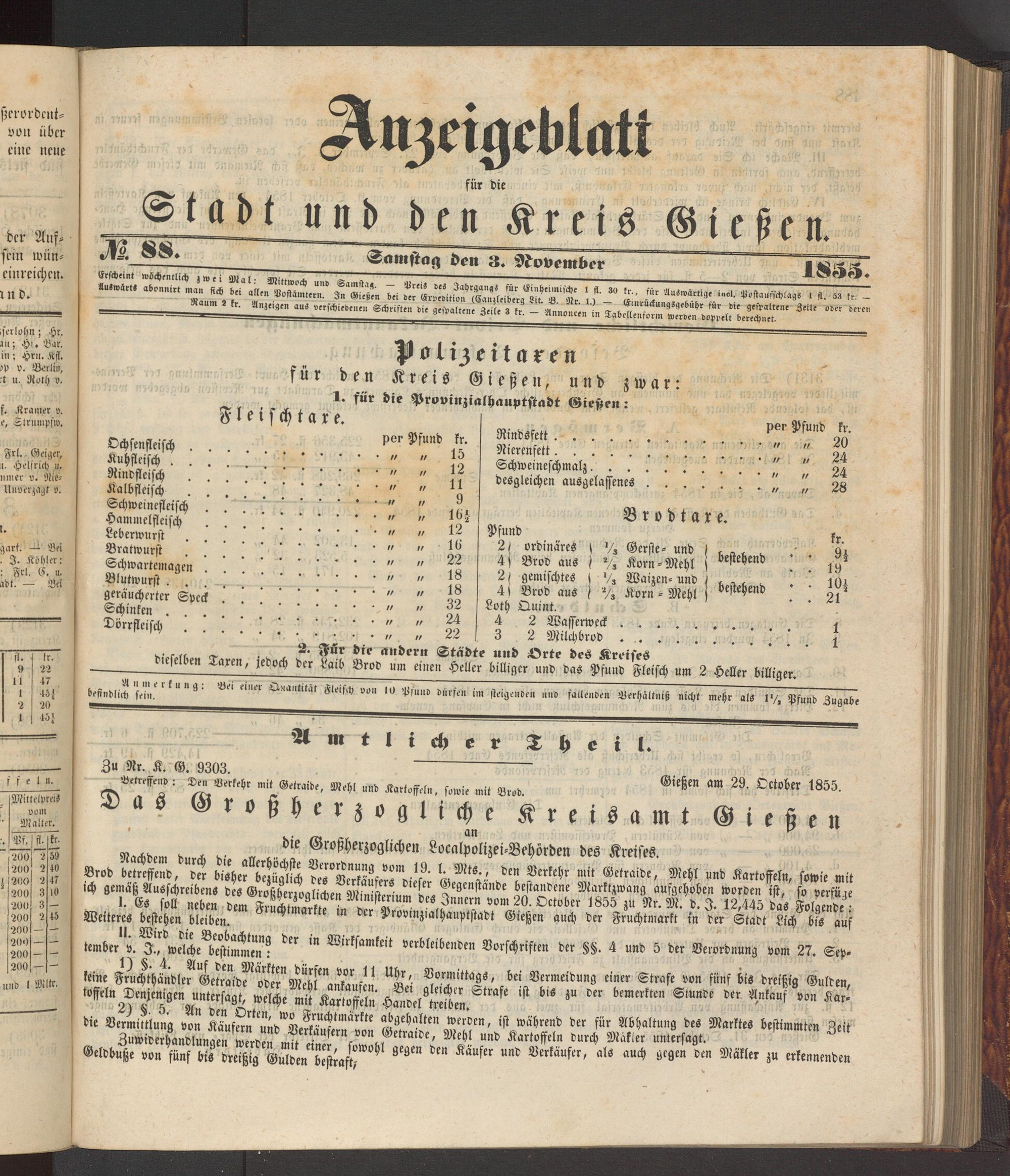 Anzeigeblatt für die Provinzialhauptstadt Gießen. 1840-1867