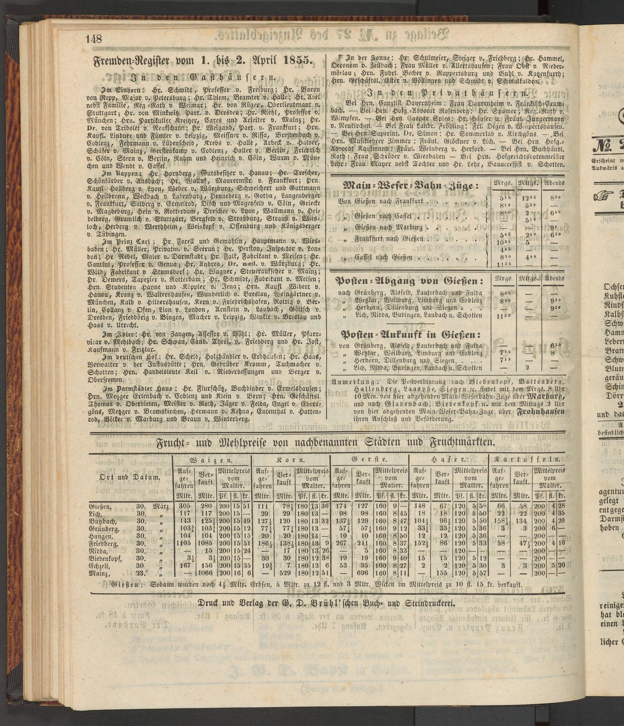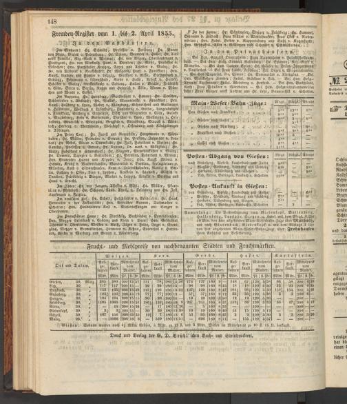 Anzeigeblatt für die Provinzialhauptstadt Gießen. 1840-1867