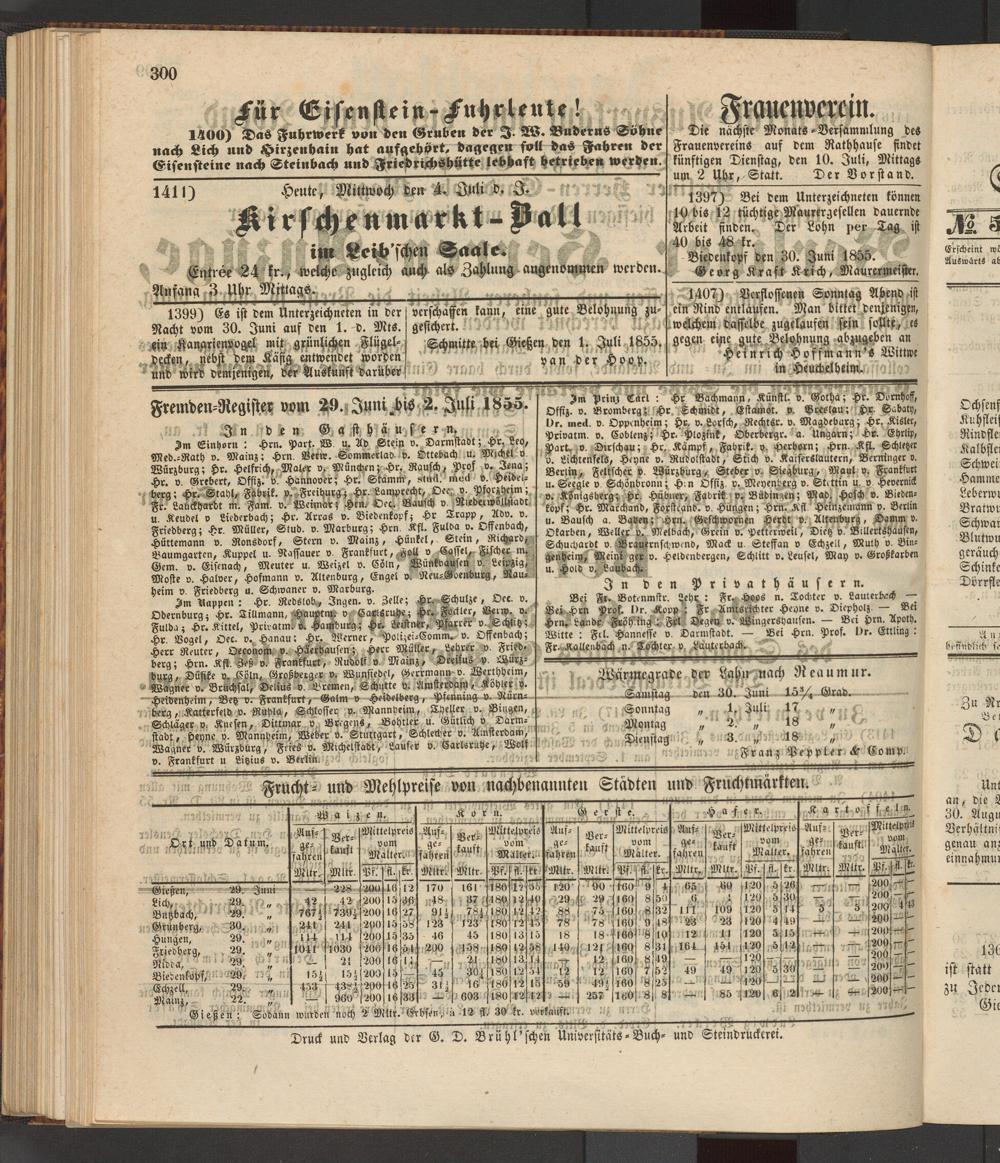Anzeigeblatt für die Provinzialhauptstadt Gießen. 1840-1867