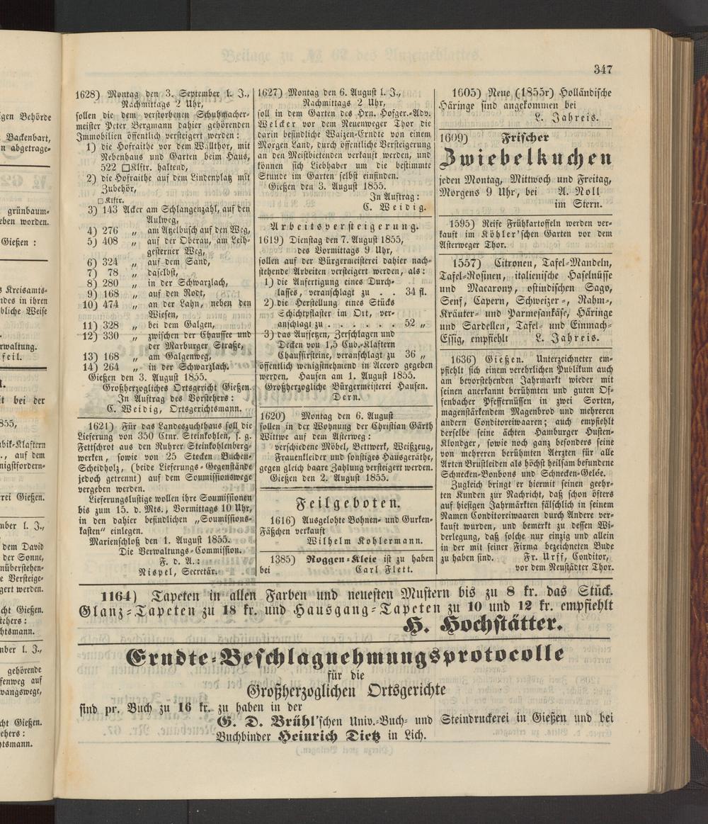Anzeigeblatt für die Provinzialhauptstadt Gießen. 1840-1867