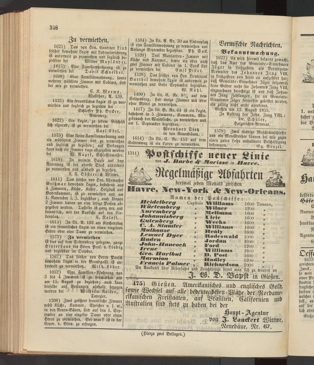Anzeigeblatt für die Provinzialhauptstadt Gießen. 1840-1867