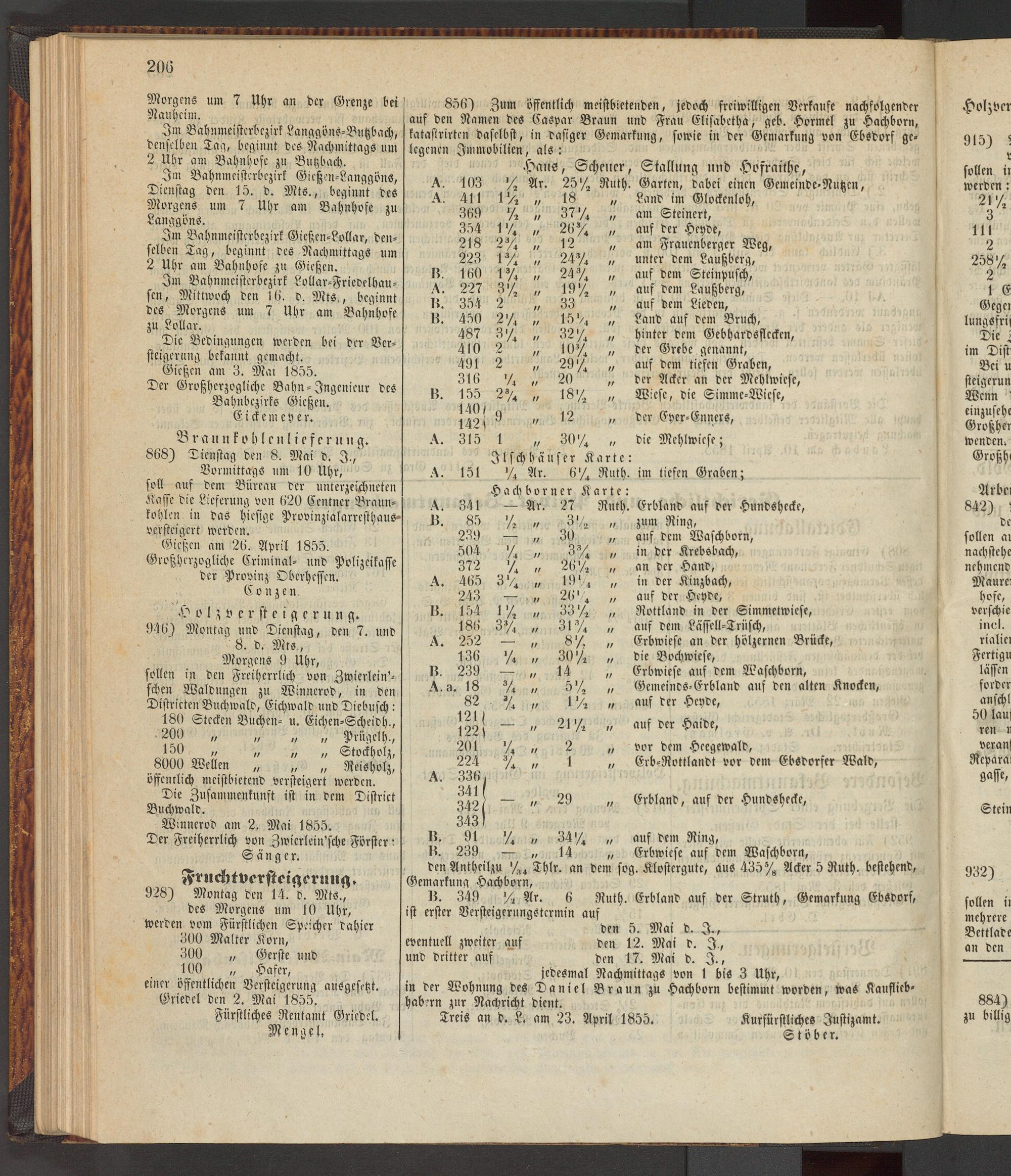 Anzeigeblatt für die Provinzialhauptstadt Gießen. 1840-1867