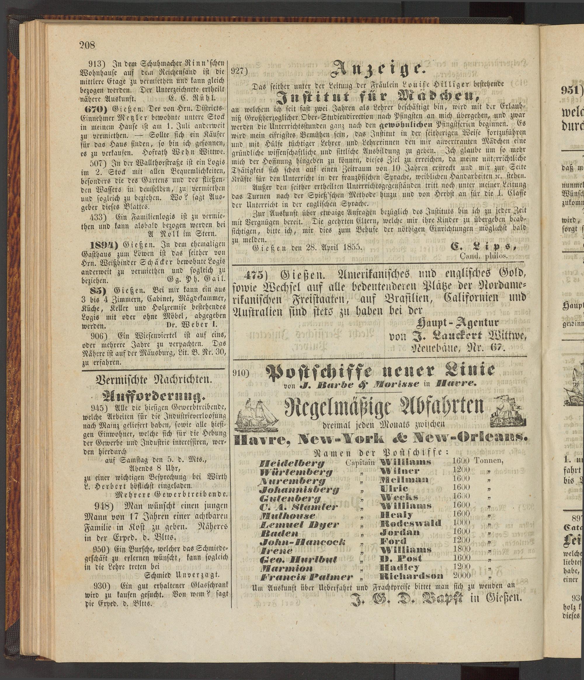 Anzeigeblatt für die Provinzialhauptstadt Gießen. 1840-1867